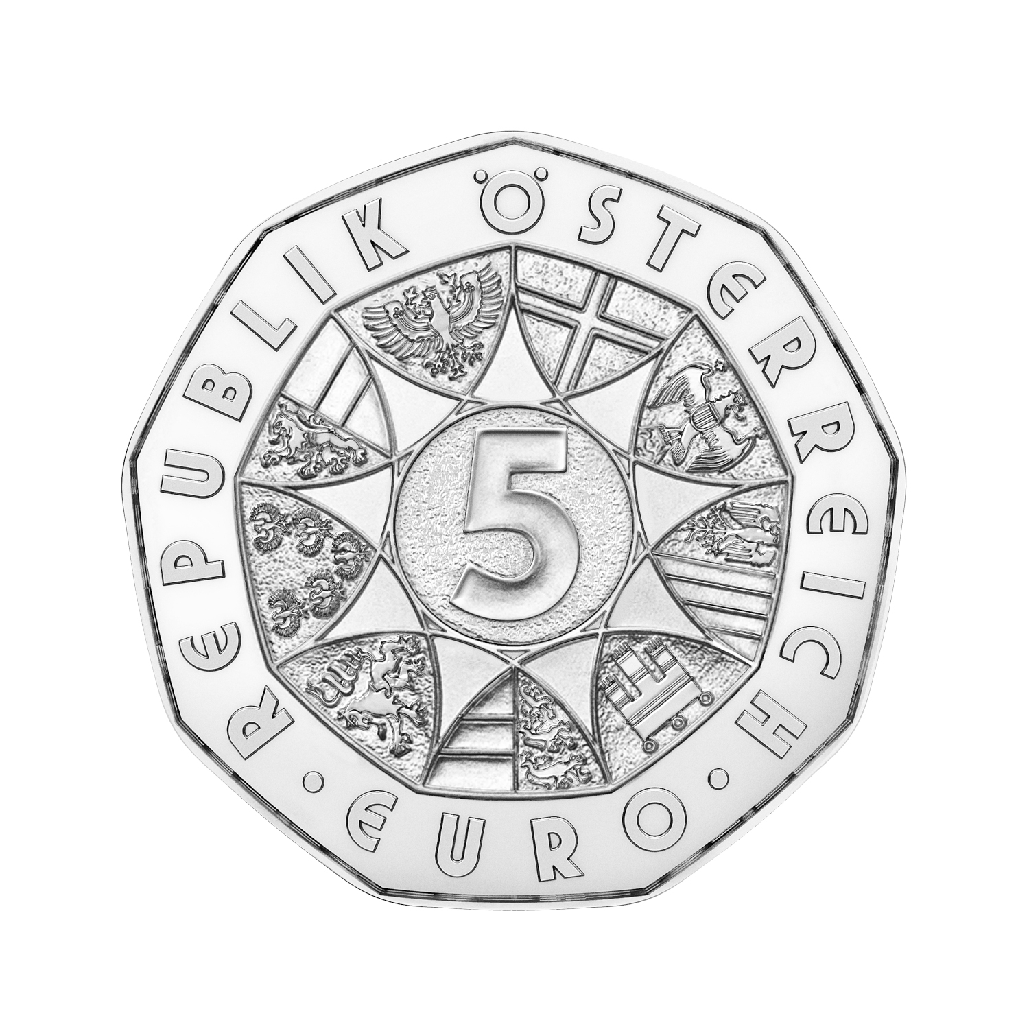 Jährlich feiert das Narzissenfest im Ausseerland diese besondere Blume mit kunstvollen Blütenskulpturen. Die Münze zeigt vier Narzissenarten, die in Österreich heimisch sind, während die Wertseite die neun Landeswappen Österreichs trägt.