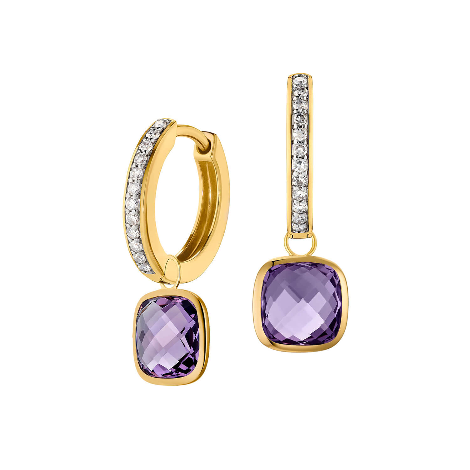 Diese Anhänger in Gelbgold 585 mit Amethysten lassen sich an Minicreolen anbringen und verwandeln diese im Handumdrehen in elegante Ohrhänger!