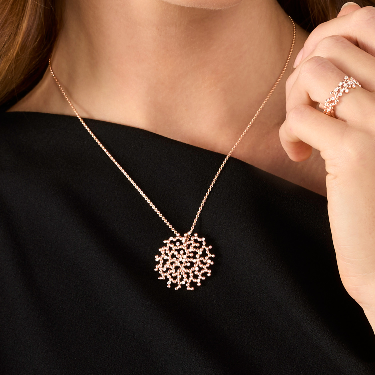 Der große AURELIA Anhänger aus 585/- Rotgold vereint in perfekter Harmonie Wärme, Eleganz und strahlende Silhouetten. Mit einem Durchmesser von 30 mm bildet das warme Rotgold einen klaren, zeitlosen Rahmen, der die 26 funkelnden Brillanten (insgesamt 0,26 ct. TWvsi) gekonnt in Szene setzt. Diese feinen Diamanten bringen edlen Glanz, intensives Feuer und zarte Lichtspiele, ohne dabei aufdringlich zu wirken. Die filigrane Silhouette von AURELIA vermittelt ein leichtes, edles Tragegefühl und lässt sich sowohl tagsüber als auch abends mühelos in jedes Outfit integrieren. Ein Schmuckstück, das zeitlose Schönheit, wertvolle Handwerkskunst und außergewöhnliche Eleganz miteinander verbindet.