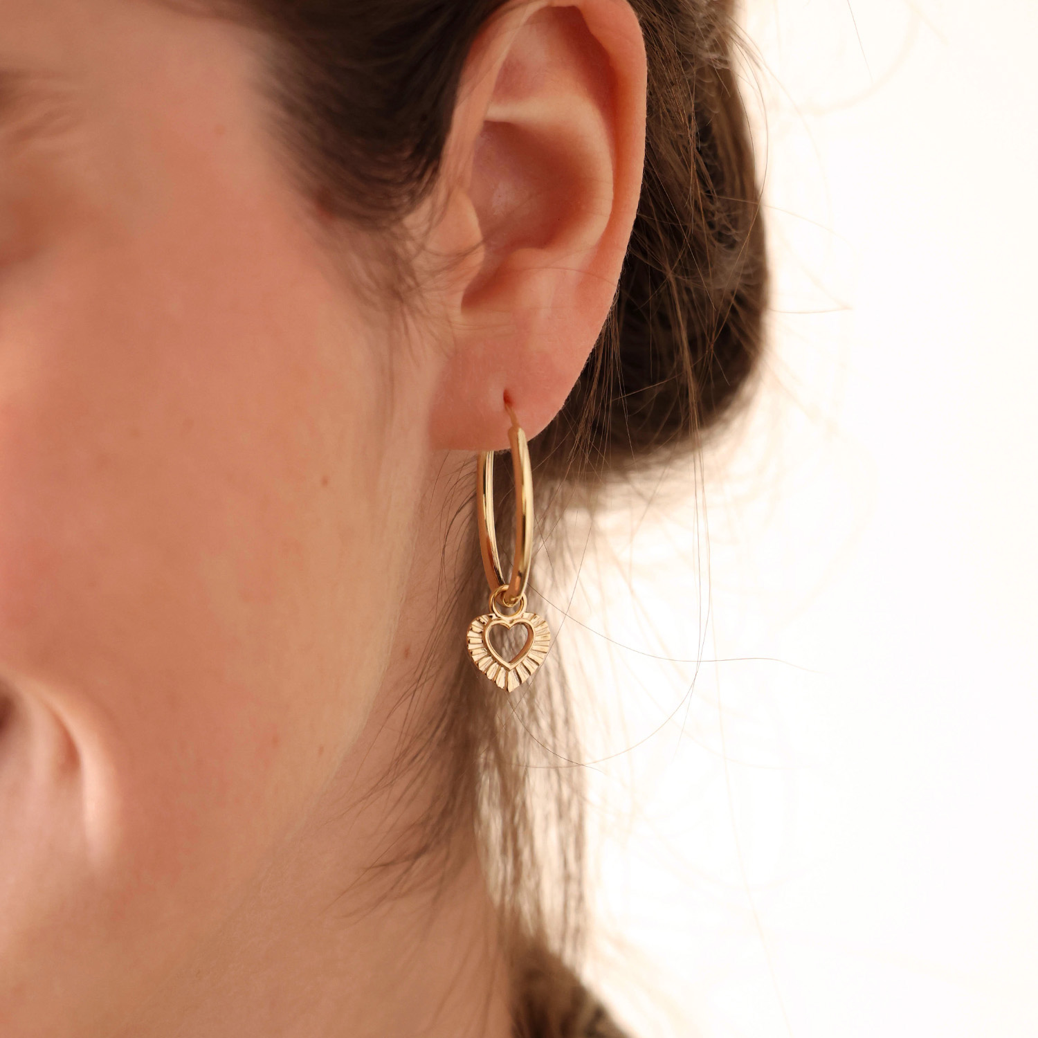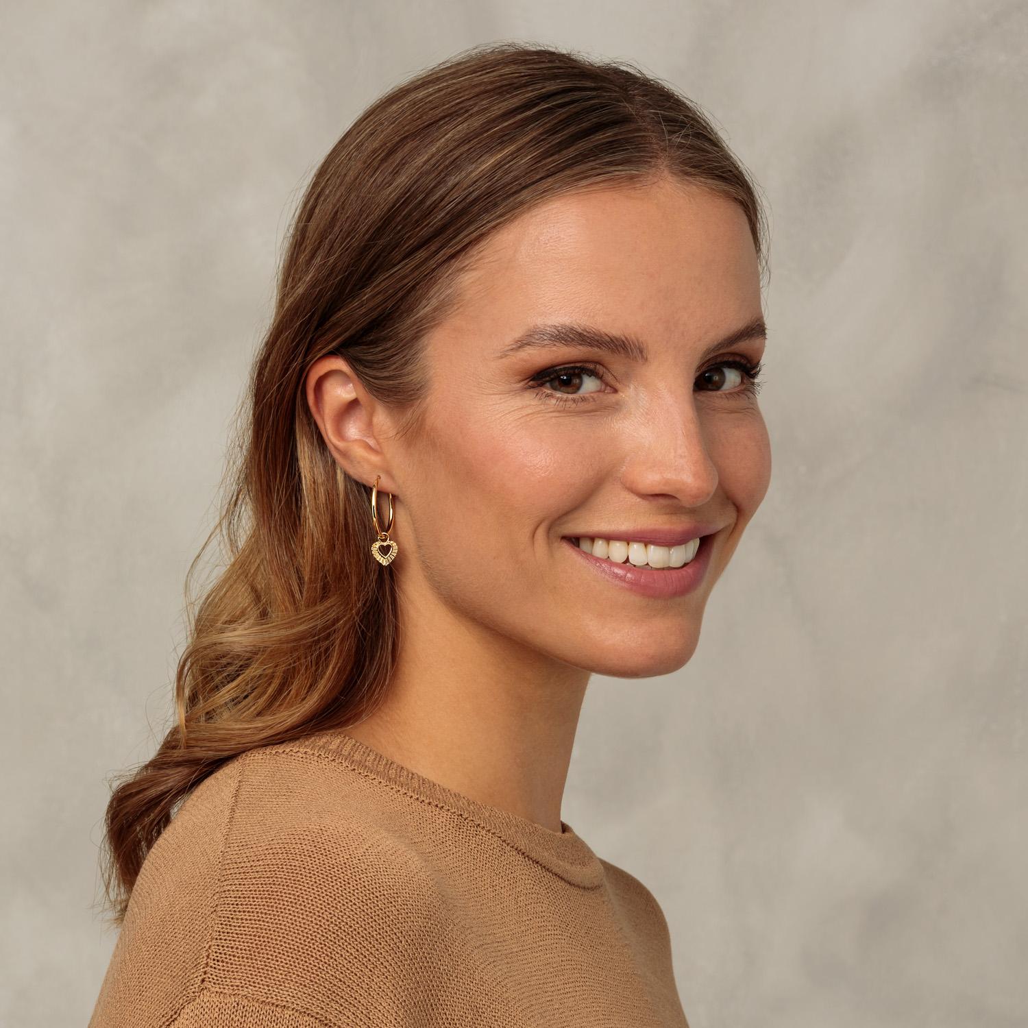 Lust auf Abwechslung? Verwandeln Sie Ihre Lieblings-Mini-Creolen doch einfach in elegante Ohrhänger! Diese herzförmigen Anhänger in Gelbgold 585/- lassen sich mit allen Mini Creolen aus unserer Ear Candy Kollektion kombinieren.