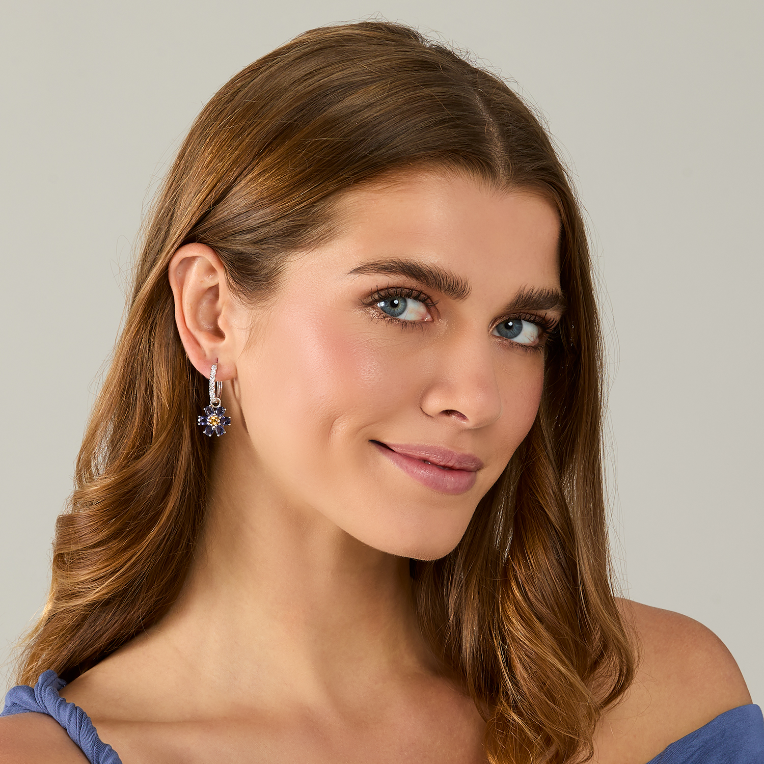 Anhänger für Creolen KRISTALL BLÜTE - groß - Sterlingsilber mit Citrin und Iolith