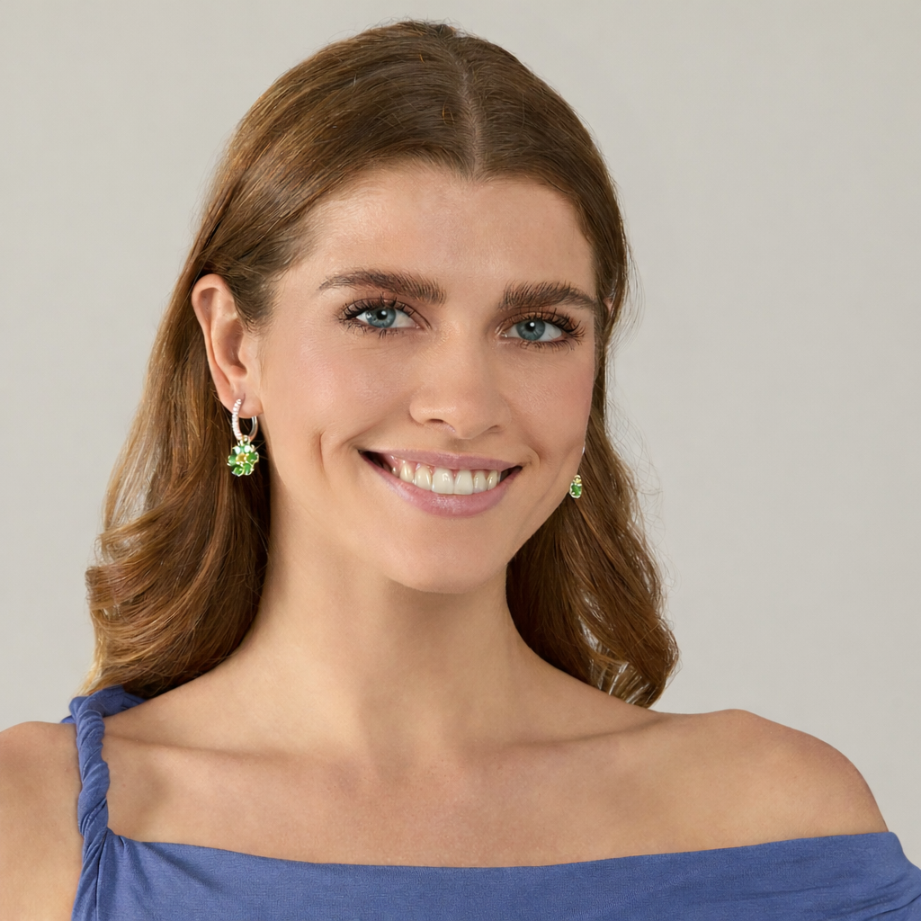 Entdecke die zauberhafte Schönheit der KRISTALL BLÜTE Anhänger für Creolen aus 925/- Sterlingsilber. Diese eleganten Anhänger mit einem Durchmesser von 15 mm sind ein strahlender Blickfang. Im Zentrum leuchtet ein warmer Citrin, umrahmt von sechs zarten Peridots, die ein harmonisches Farbspiel aus sonnigem Gelb und frischem Grün entfalten. Das filigrane Design erinnert an eine blühende Blume aus Licht und Farbe und verleiht jedem Look eine natürliche, feminine Ausstrahlung. Ob im Alltag oder zu besonderen Anlässen – die KRISTALL BLÜTE Anhänger für Creoelen sind das perfekte Accessoire, um deinem Stil Leuchtkraft und Eleganz zu verleihen.
