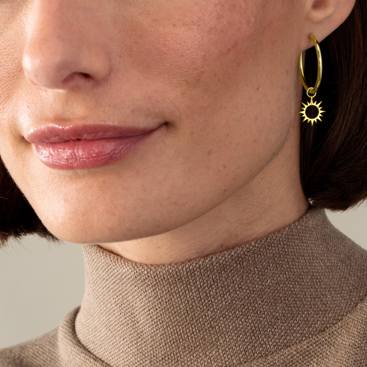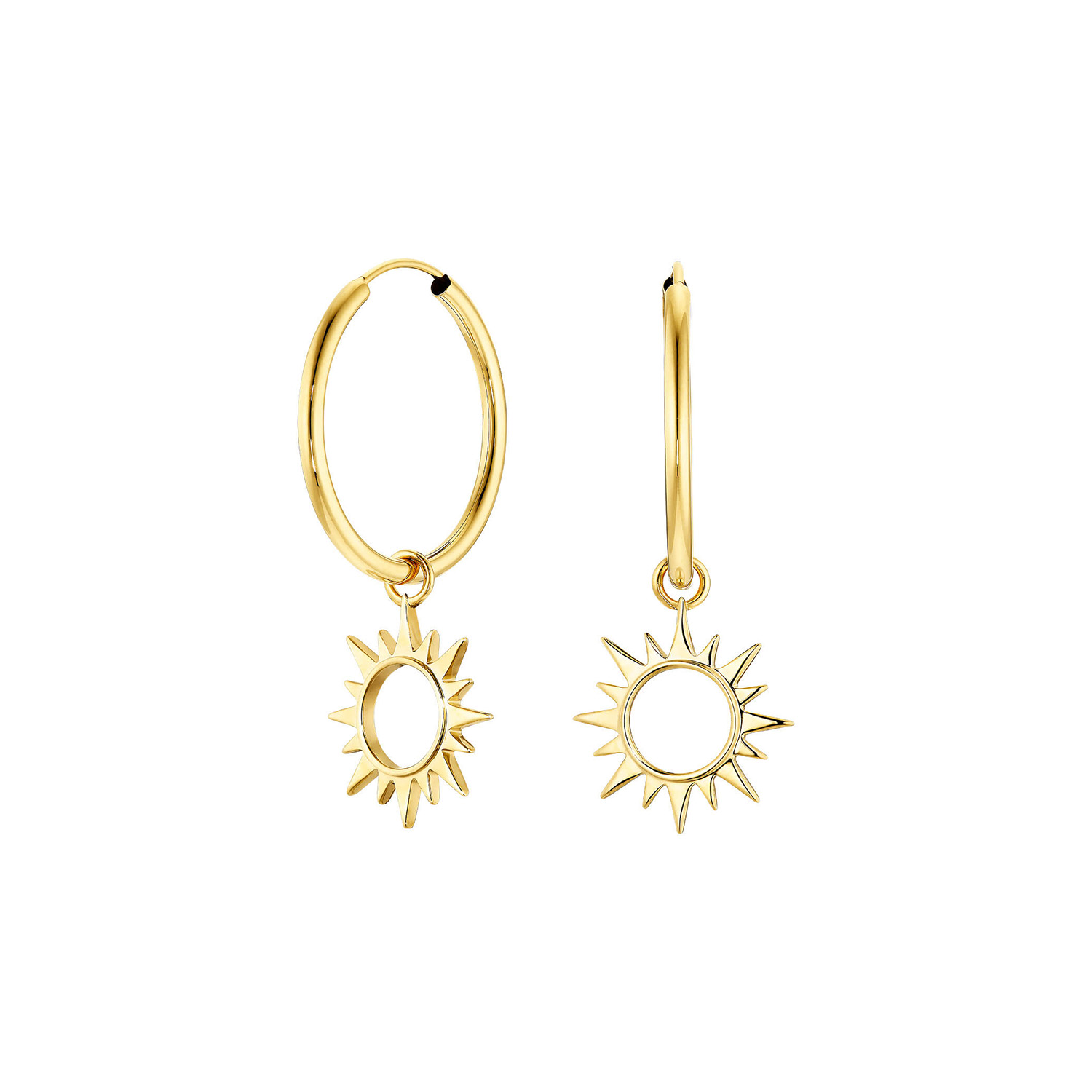 Strahlen Sie mit der Sonne um die Wette und verwandeln Sie Ihre Lieblingscreolen ganz nach Lust und Laune in elegante Ohrhänger! Diese zarten Anhänger für Creolen sind in der Form von kleinen Sonnen gestaltet und lassen sich mit allen Creolen aus unserer EAR CANDY Kollektion kombinieren. Beschenken Sie sich selbst oder einen geliebten Menschen mit diesem wunderschönen Ohrschmuck in 585/- Gold.