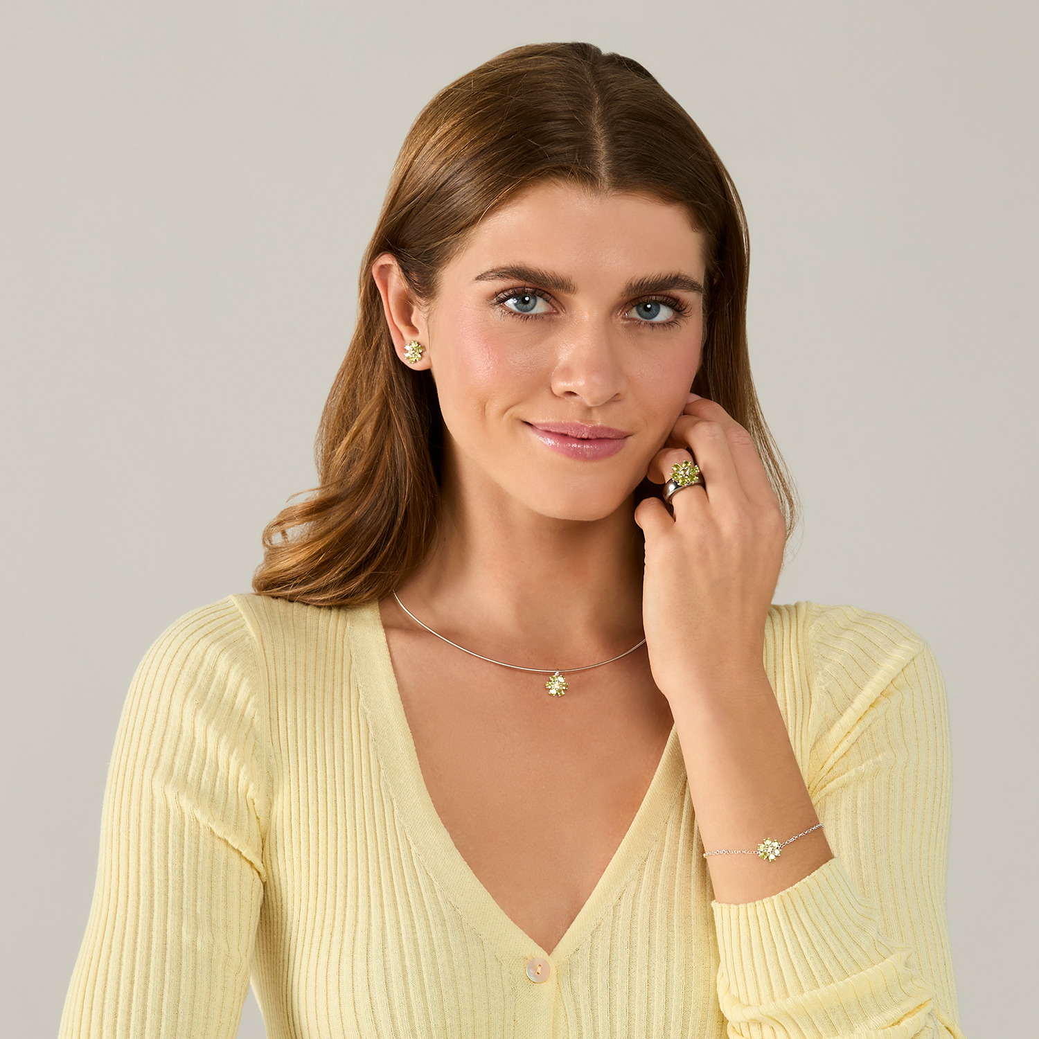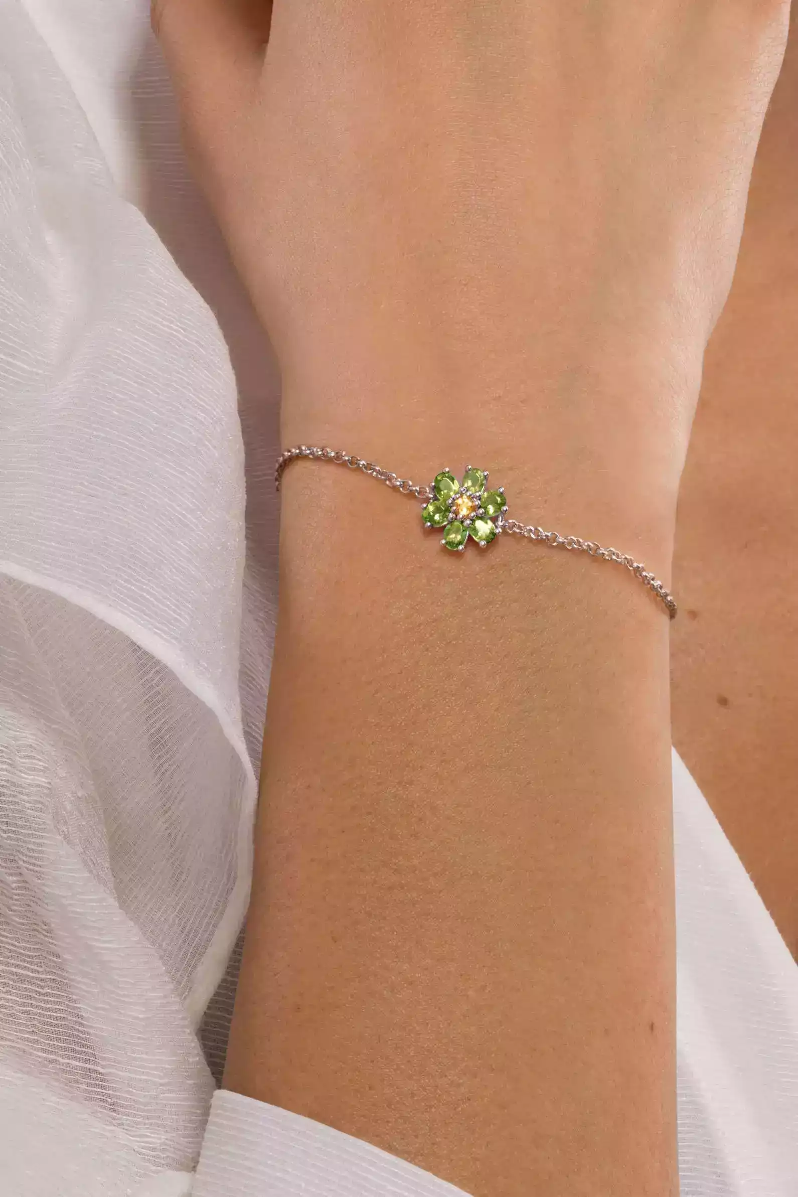 Armband KRISTALL BLÜTE Sterlingsilber mit Citrin und Peridot
