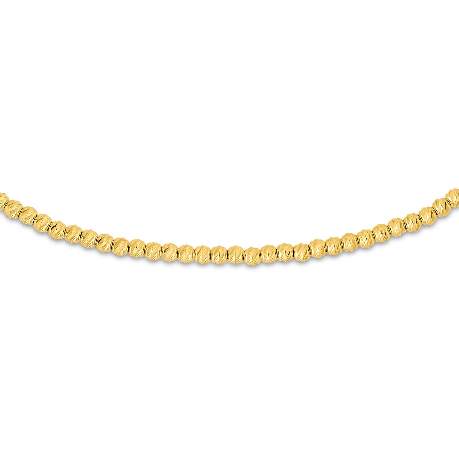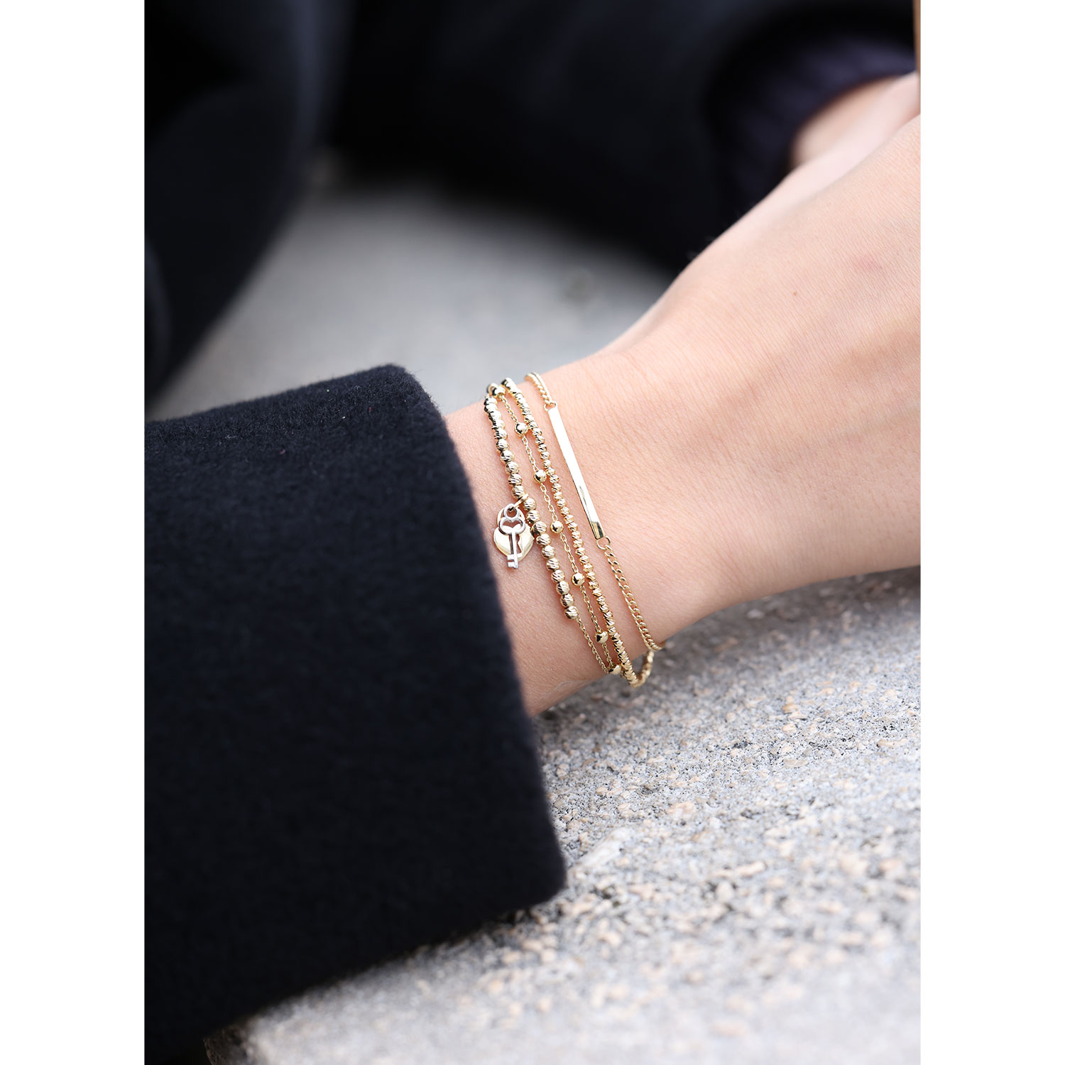 Zarte Armkette aus 585/- Gelbold. Die diamantierten Kügelchen bringen das Armband zum Strahlen und verleihen dem Schmuckstück eine besondere Eleganz. Tragen Sie gleich mehrere Armketten, auch in unteschiedlichen Farben, hintereinander und setzten Sie ein Modestatement.
