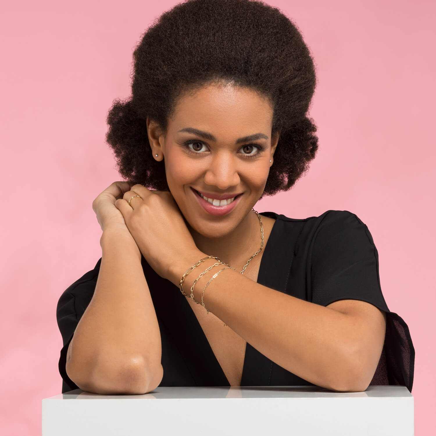 Diese wunderschöne Armkette aus der Shine Kollektion ist aus 585/- Gold gefertigt. Der angesagte "paper clip" Stil besteht aus vielen ineinander verhakten Rechtecken die zusammen ein traumhaft klassisches-modernes Schmuckstück ergeben. Dieser Artikel wurde nachhaltig unter Einhaltung des Code of Practice (CoP) Standards des Responsible Jewellery Council (RJC) zertifiziert gefertigt.