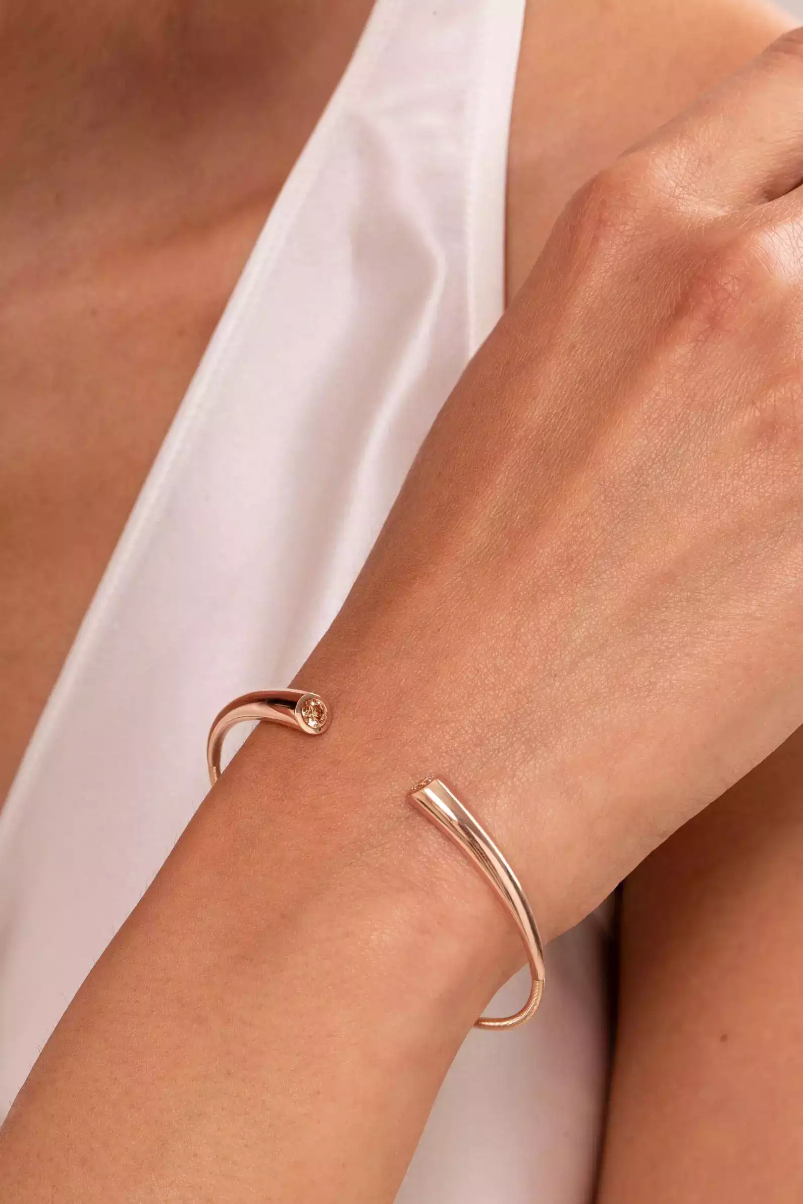 Entdecken Sie die elegante DIALOG Armspange aus 585/- Rotgold – ein stilvolles Schmuckstück, das durch seine klare Linienführung besticht. Zwei funkelnde Fancy-Brillanten mit insgesamt 0,60 ct WSI verleihen dieser Armspange einen Hauch von Luxus und Raffinesse. Die Innenmaße von 57 x 39 mm sorgen für angenehmen Tragekomfort und passen sich perfekt dem Handgelenk an. Ob zu besonderen Anlässen oder als tägliches Highlight – die DIALOG Armspange verbindet zeitlose Schönheit mit hochwertiger Verarbeitung und macht jedes Outfit zu etwas Besonderem.