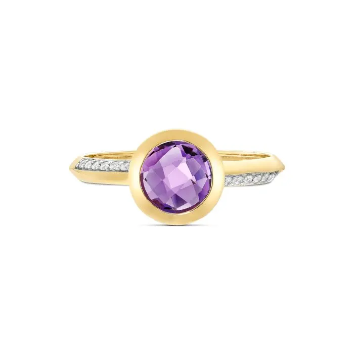 Dieser elegante Ring aus Gold 585 kombiniert strahlende Brillanten (zus. ca. 0,06 ct., H Weiß/p1) mit einem leuchtend violetten Amethyst. Dieser Ring eine exquisite Geschenkidee für Frauen, die zeitlose Eleganz und farbenfrohe Akzente schätzen.