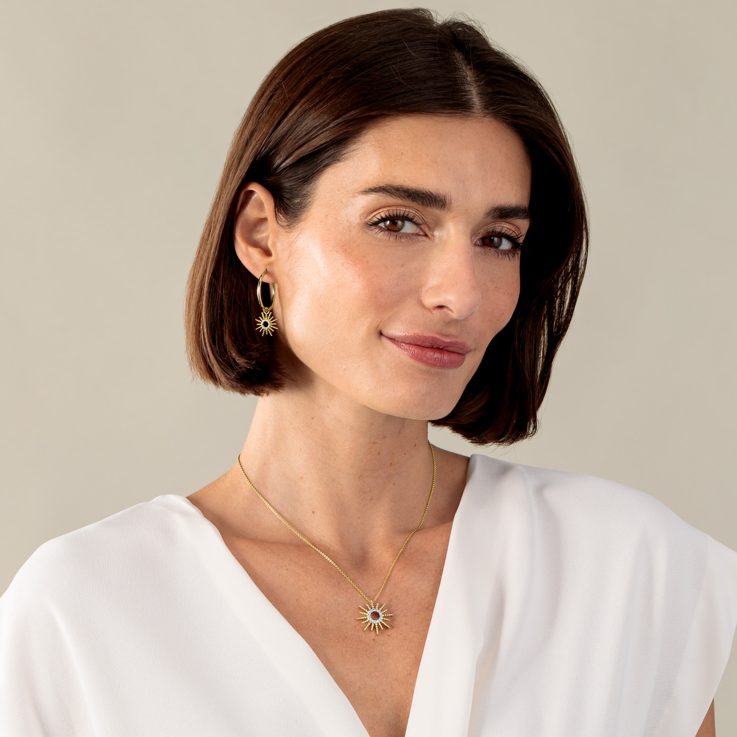 Nicht nur im Sommer sind die Einhänger "Sonne" ein wunderschönes Accessoire. Das Schmuckstück ist aus Gelbgold 585/- gefertigt und mit funkelnden Brillanten (zus. ca. 0.04 ct., Qualität: H/p1) besetzt. Kombinieren Sie kleine und große Creolen aus unserem Sortiment dazu und kreieren Sie ein wunderschönes Set, welches zu jedem Outfit und jedem Anlass passt.