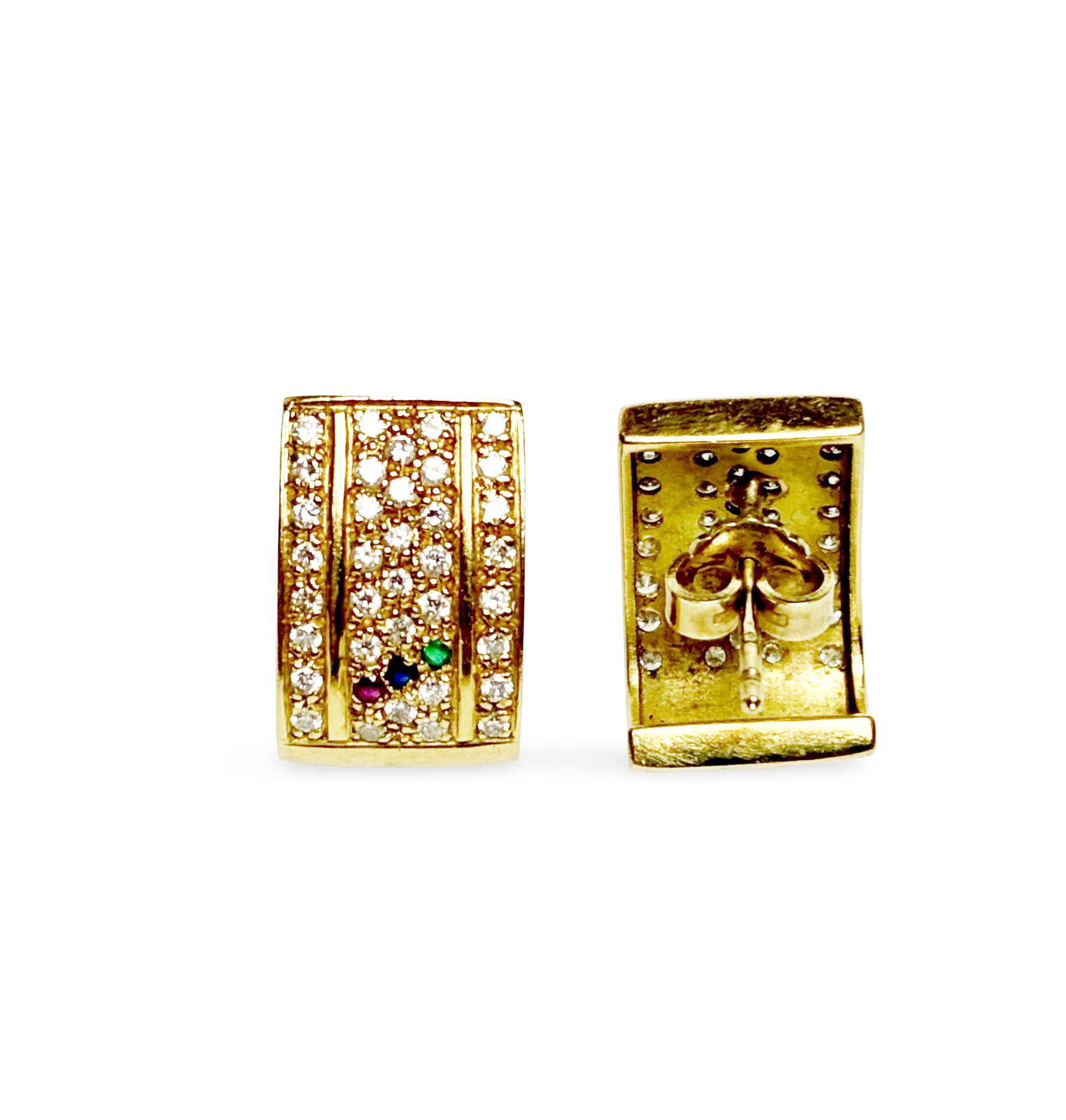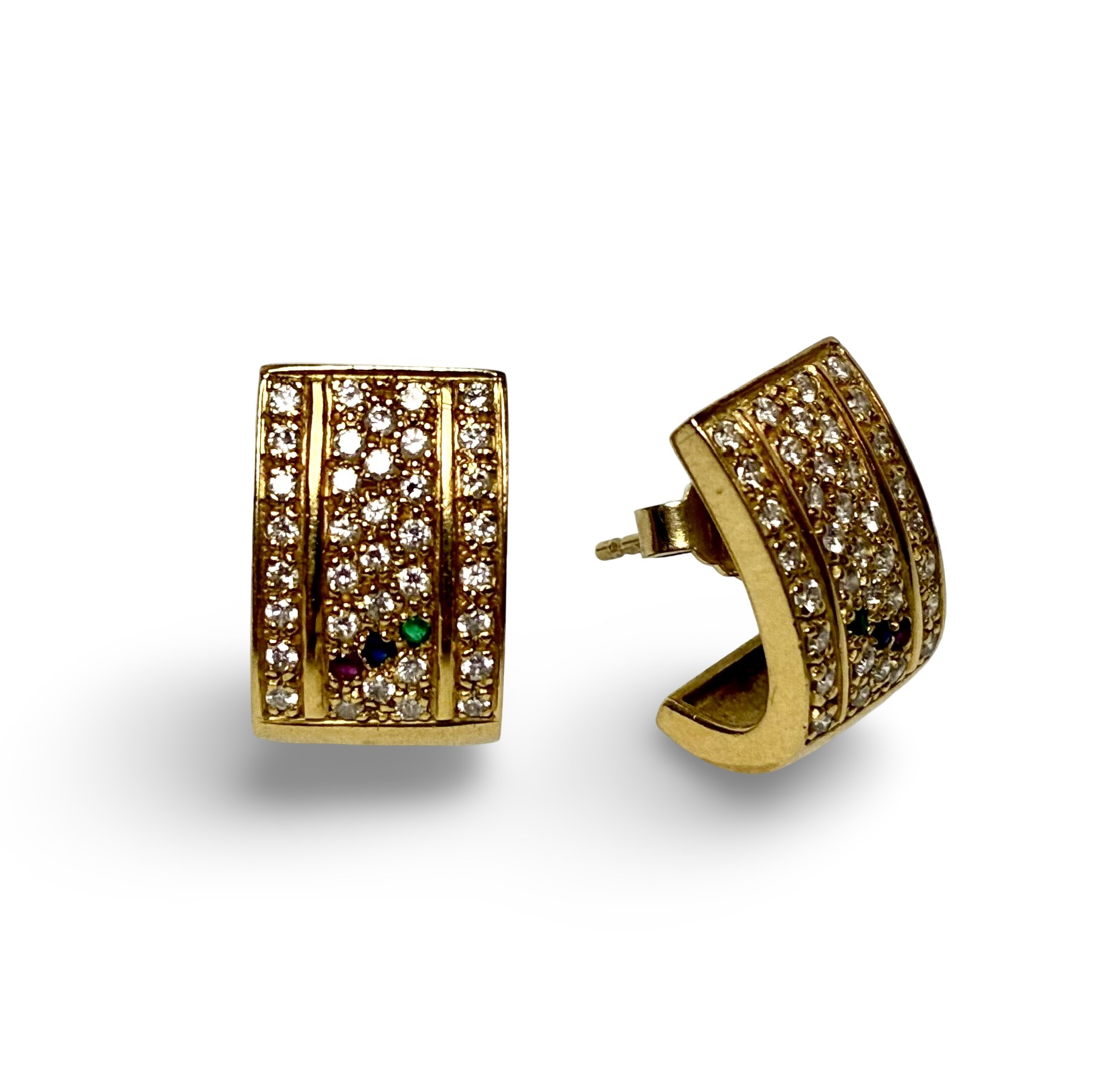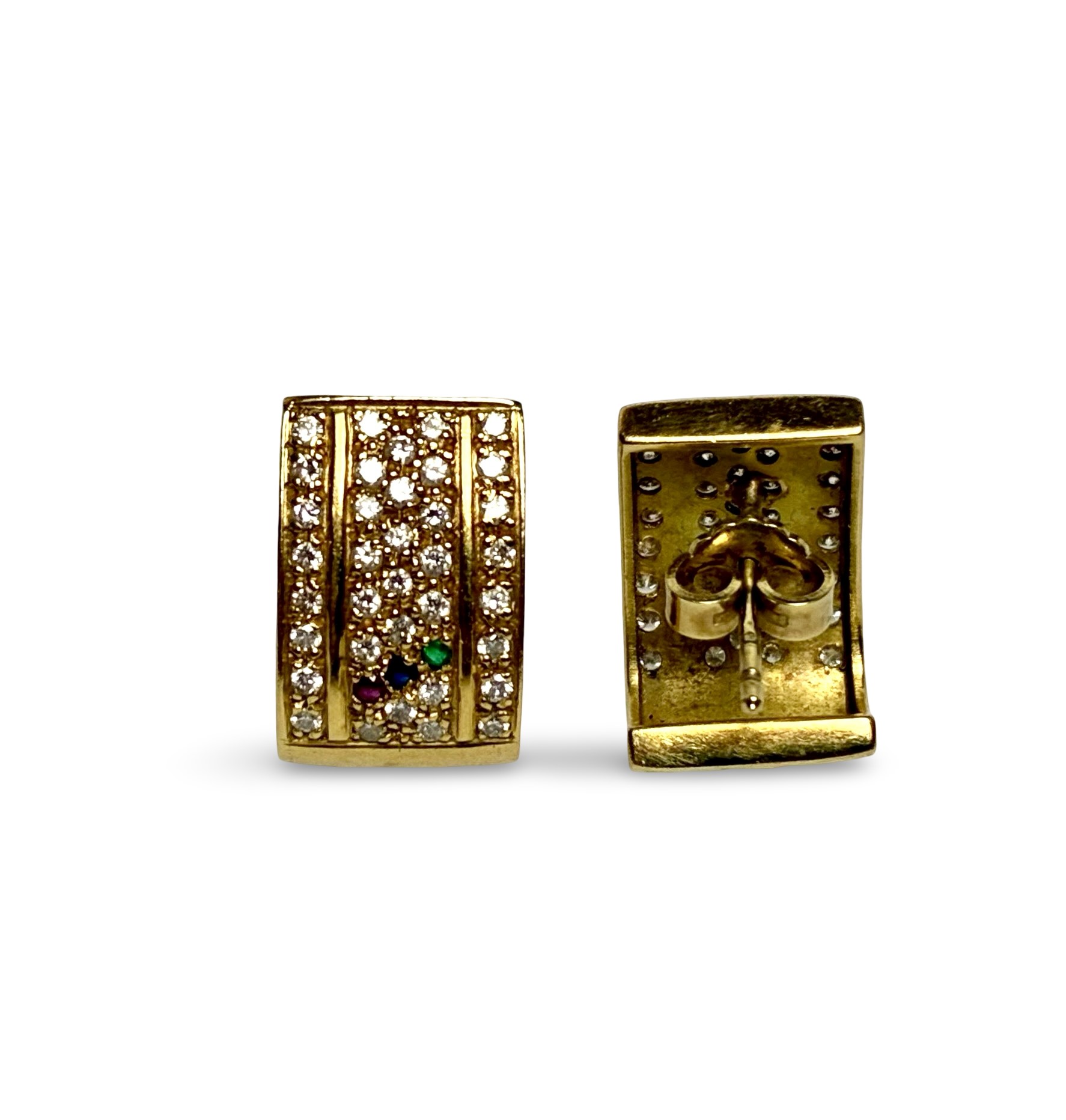 Besatz: Brillanten zus. (ca. 0,70ct, H-I/si-p), je ein Saphir, Rubin und Smaragd