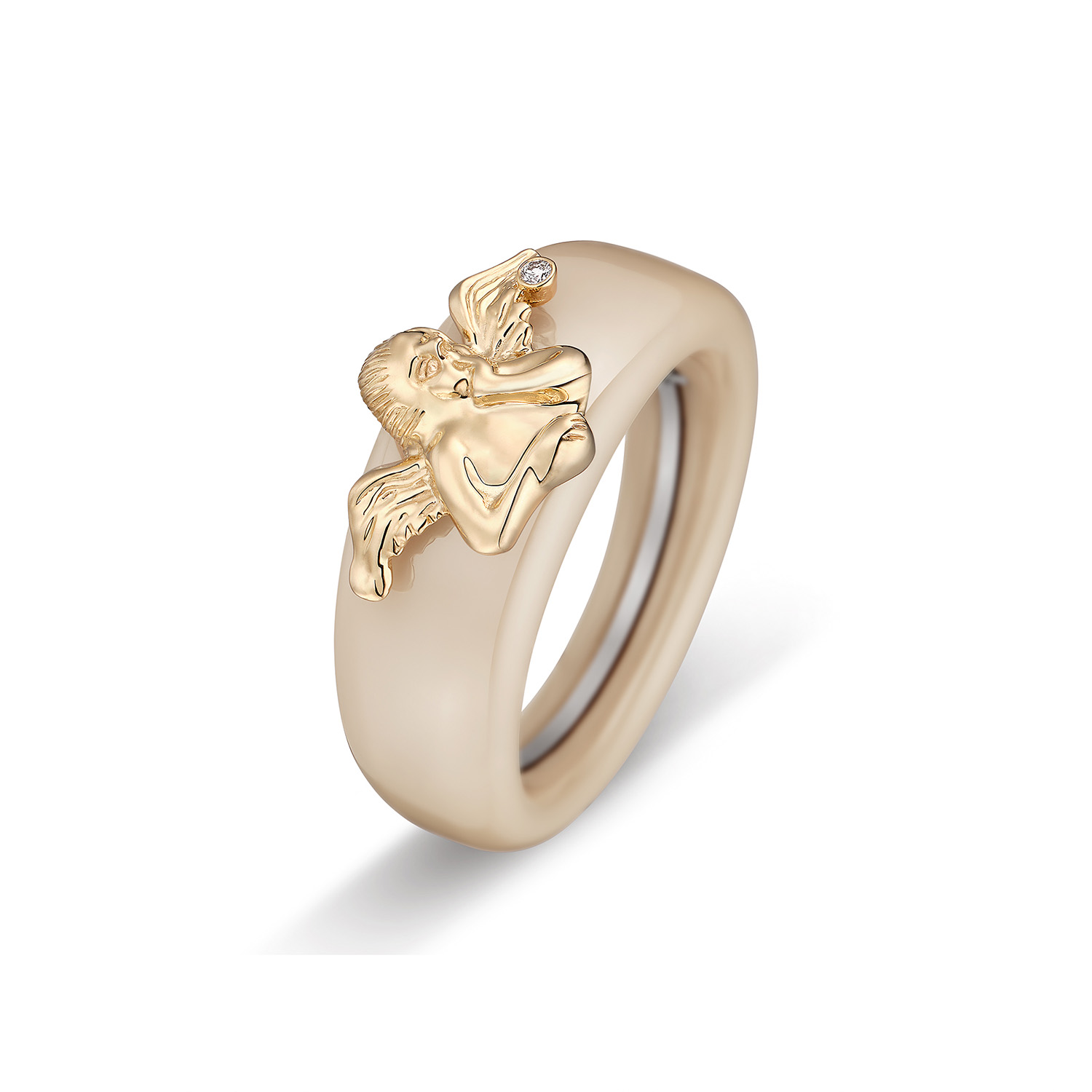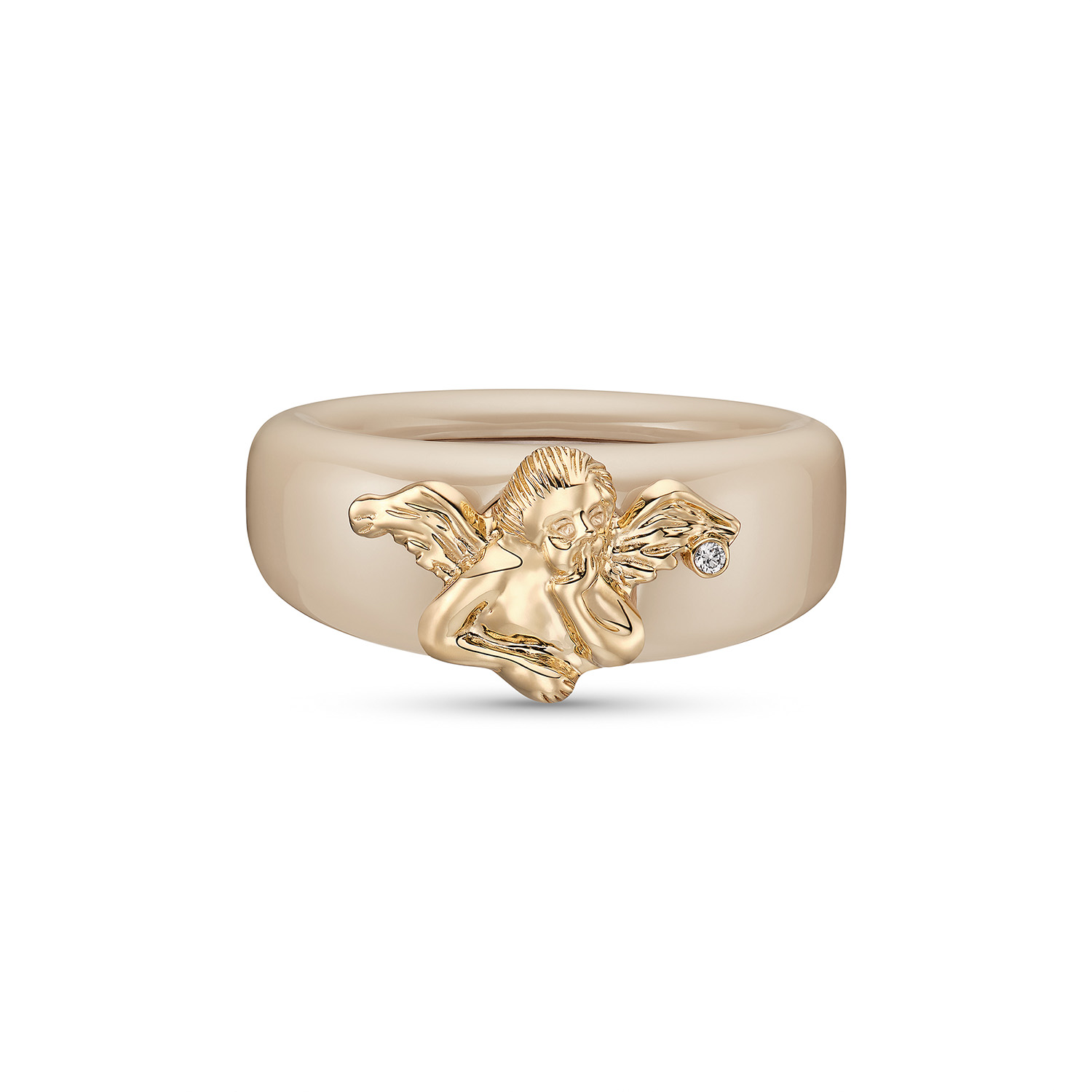 Der Ringaufsatz SCHUTZENGEL aus hochwertigem Gelbgold 585/- ist ein wahres Meisterwerk der Goldschmiedekunst und Symbolisiert Schutz, Liebe und Geborgenheit. Der filigran gestaltete Engel fügt sich elegant in das Design des Charlotte Ringes ein und begleitet ihn als sanftes Zeichen eines Schutzengels, der stets an der Seite des Trägers bleibt. Ein funkelnder Brillant von 0,0075 ct. Wsi setzt dem Ringaufsatz einen dezenten Glanzpunkt und verleiht ihm eine subtile Eleganz. Ein perfektes Geschenk, das Liebe, Schutz und Geborgenheit auf eine wunderschöne Weise vereint und über Generationen hinweg weitergegeben werden kann.
