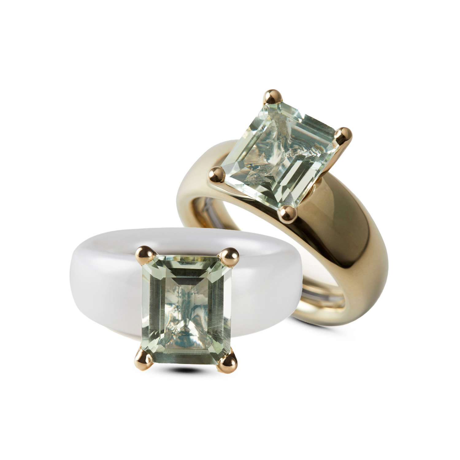 Stilvoller Charlotte TOUCH Kopf aus der Kollektion COCKTAIL, gefertigt aus hochwertigem 585/- Gelbgold. Das elegante Design besticht durch seine emeraldförmige Form und verleiht jedem Schmuckstück eine raffinierte Note. Im Zentrum befindet sich ein facettierter Prasiolith in den Maßen 11 x 8,5 mm, der durch sein lebendiges Grün und den funkelnden Facettenschliff einen faszinierenden Blickfang darstellt. Ob für besondere Anlässe oder als elegantes Alltagsaccessoire – dieses Schmuckstück verbindet natürliche Schönheit mit moderner Eleganz und bringt Freude in jeden Moment.