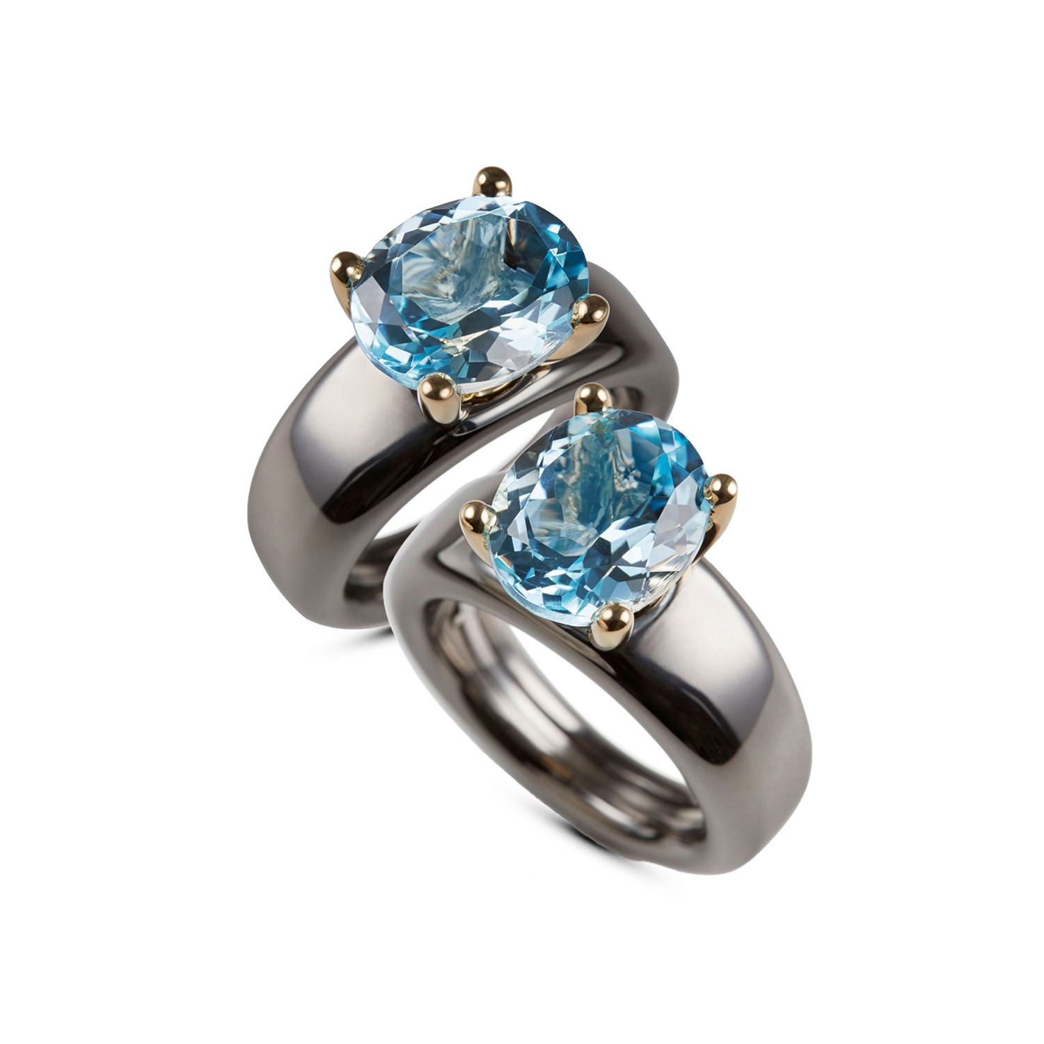 Charlotte TOUCH Kopf COCKTAIL Gelbgold 585/- mit Topas sky blue, oval