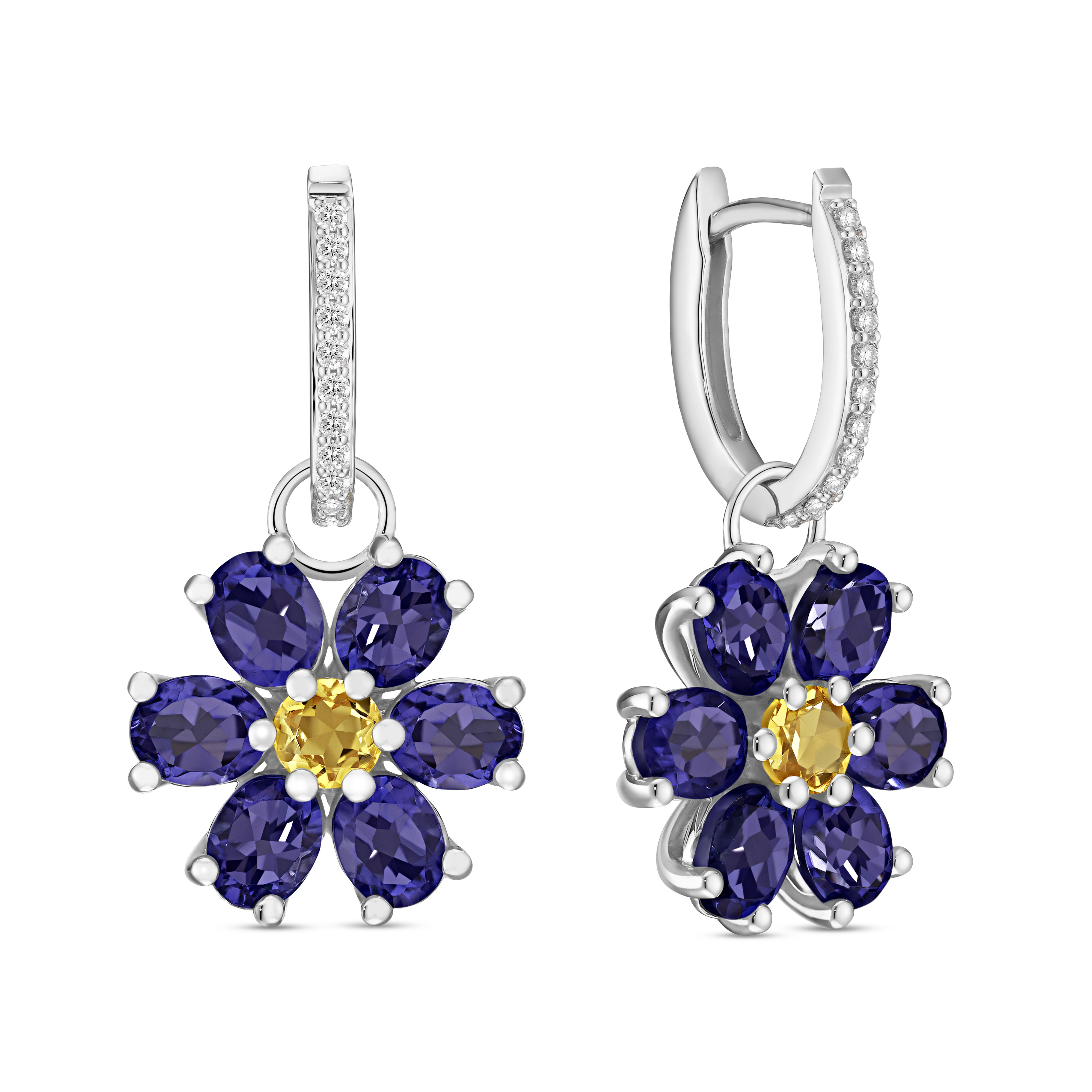 Ear Candy KRISTALL BLÜTE Sterlingsilber mit Citrin und Iolith