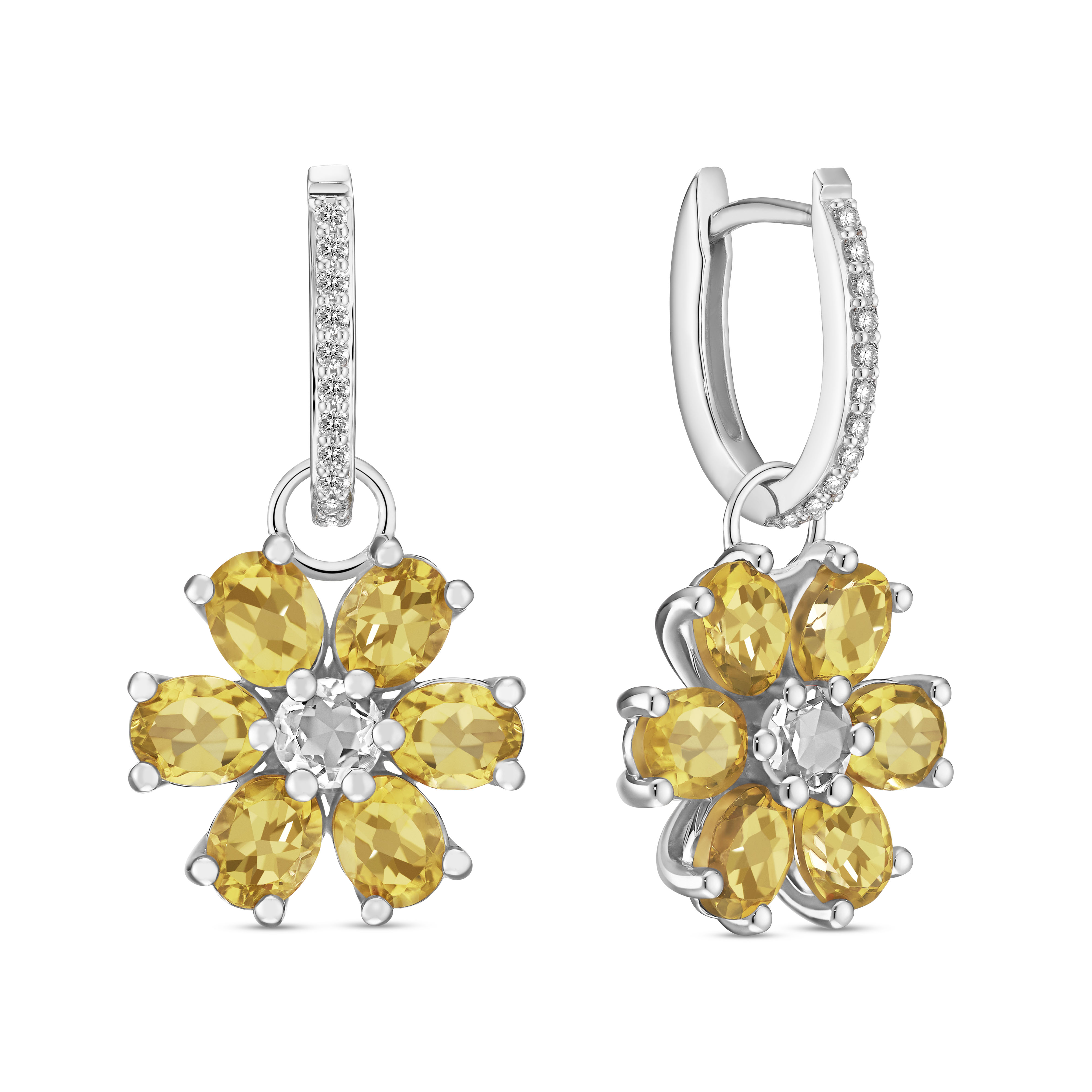 Ear Candy KRISTALL BLÜTE Sterlingsilber mit Safir und Citrin