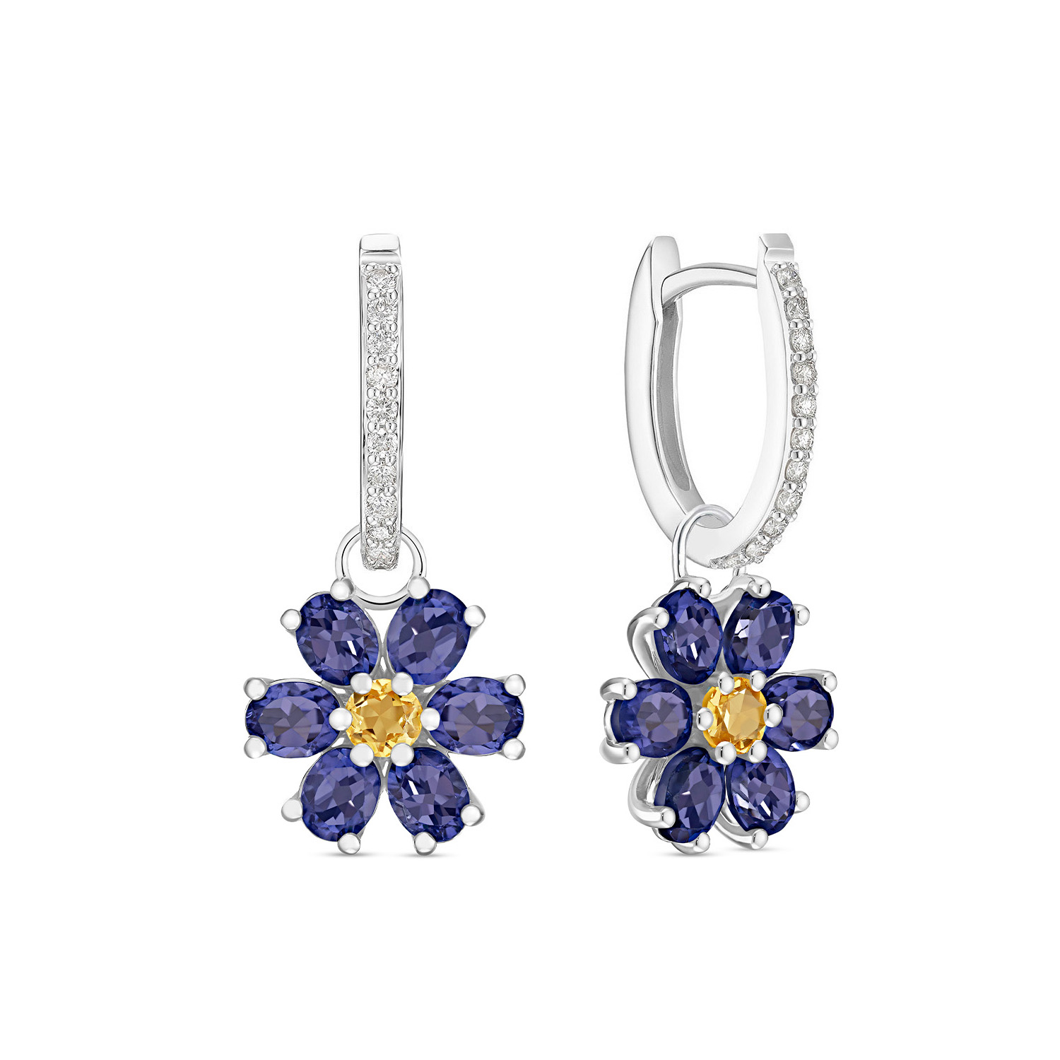 Ear Candy KRISTALL BLÜTE - klein - Sterlingsilber mit Citrin und Iolith