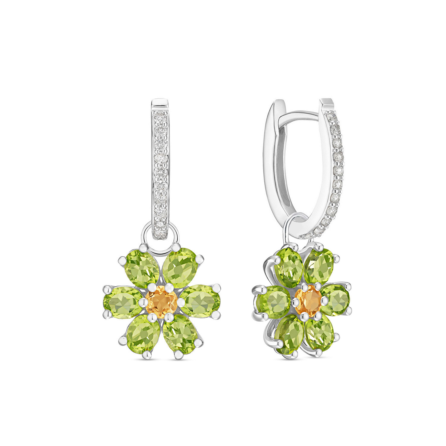 Ear Candy KRISTALL BLÜTE - klein - Sterlingsilber mit Citrin und Peridot