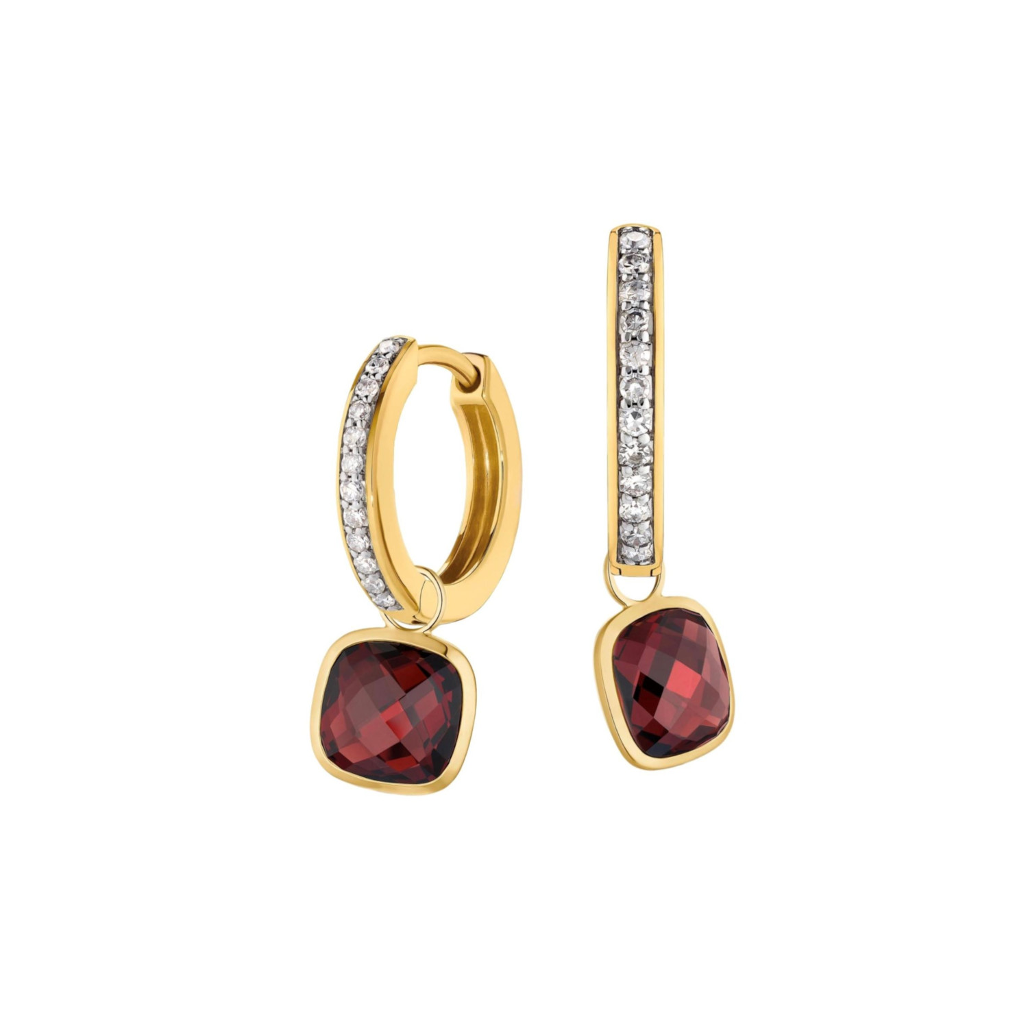 Diese Anhänger in Gelbgold 585/- mit Granat lassen sich an Minicreolen anbringen und verwandeln diese im Handumdrehen in elegante Ohrhänger!
