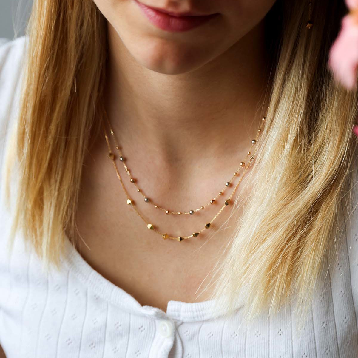 Egal ob zum eleganten Abendkleid oder im Alltag zu Jeans und T-Shirt, diese Halskette passt wirklich immer. Das Collier aus unserer "Shine" Kollektion besteht aus einer harmonischen Kombination von 585/- Weißgold, Gelbgold und Roségold. Die Halskette ist in etwa zwei Drittel der Länge mit schimmernden Kugeln in Weißgold, Gelbgold und Roségold besetzt, zwischen denen ein Abstand von ca. 1 cm liegt. Ein besonderes Highlight ist die Zwischenöse bei 42 cm, die zusätzliche Flexibilität bietet. Diese Halskette mit Kugeln aus Gold ist ein wahrer Blickfang, perfekt für jeden Anlass. Ein Must-have für alle, die eine edle Goldkette mit Kugeln suchen. Dieser Artikel wurde nachhaltig unter Einhaltung des Code of Practice (CoP) Standards des Responsible Jewellery Council (RJC) zertifiziert gefertigt.