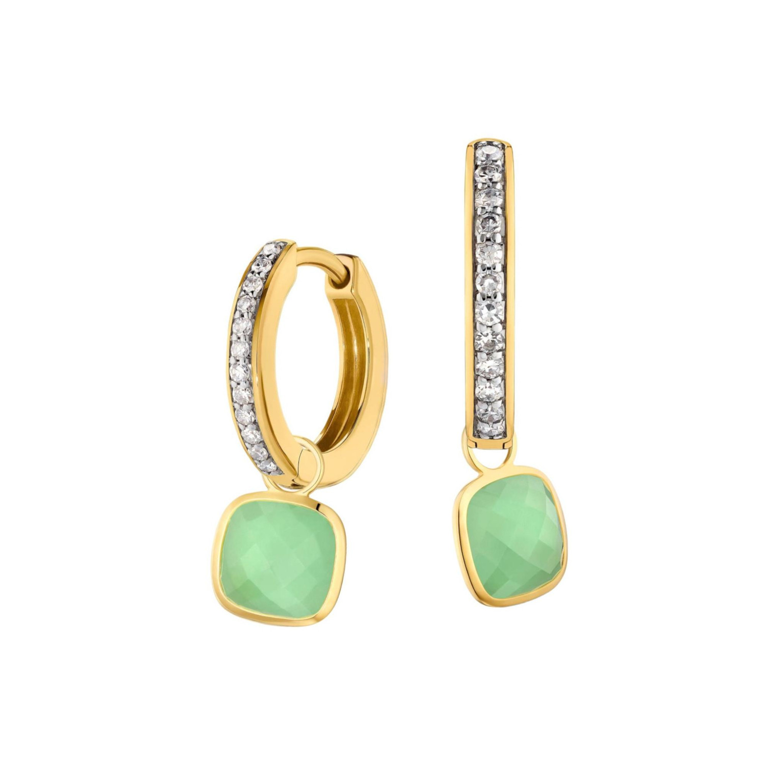 Diese Anhänger in Gelbgold 585/- mit Jadeit lassen sich an Minicreolen anbringen und verwandeln diese im Handumdrehen in elegante Ohrhänger!