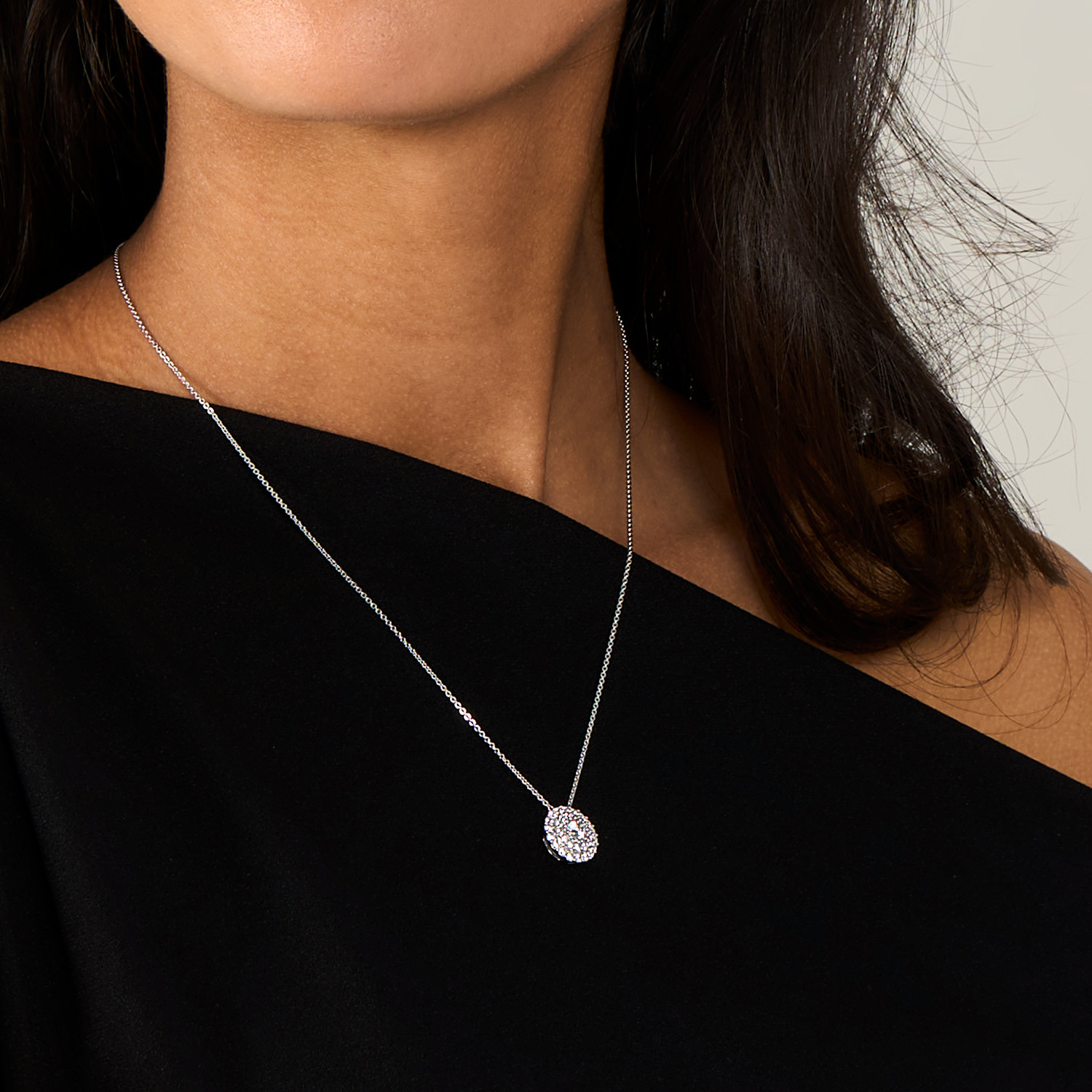 Feines Collier aus 950/- Platin mit elegantem Anhänger, besetzt mit laborgezüchteten Diamanten im Brillantschliff (zus. ca. 1,00 ct., Farbe F-G feines Weiß bis Weiß, Reinheit si). Der funkelnde Diamantbesatz zieht alle Blicke auf sich und verleiht dem Schmuckstück eine exklusive Ausstrahlung. Die Kette bietet eine Zwischenöse bei ca. 40cm, sodass die Länge individuell angepasst werden kann. Dieser Artikel wurde nachhaltig unter Einhaltung des Code of Practice (CoP) Standards des Responsible Jewellery Council (RJC) zertifiziert gefertigt.