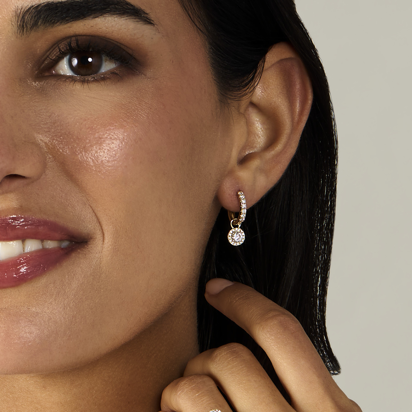 Verleihen Sie Ihren Creolen im Handumdrehen ein luxuriöses Upgrade – mit diesen exquisiten Einhängern aus hochwertigem 585/- Gold. Im Mittelpunkt stehen funkelnde laborgezüchtete Diamanten im klassischen Brillantschliff mit einem Gesamtgewicht von ca. 0,75 ct. Die Steine bestechen durch ihre außergewöhnliche Qualität (F–G/vsi), was für einen klaren, lebendigen Glanz sorgt. Ob als stilvolles Upgrade für den Alltag oder als glamouröses Highlight zu besonderen Anlässen: Diese Einhänger setzen ein elegantes Statement und bieten eine Alternative zu natürlichen Diamanten – ganz ohne Kompromisse bei der Brillanz.
