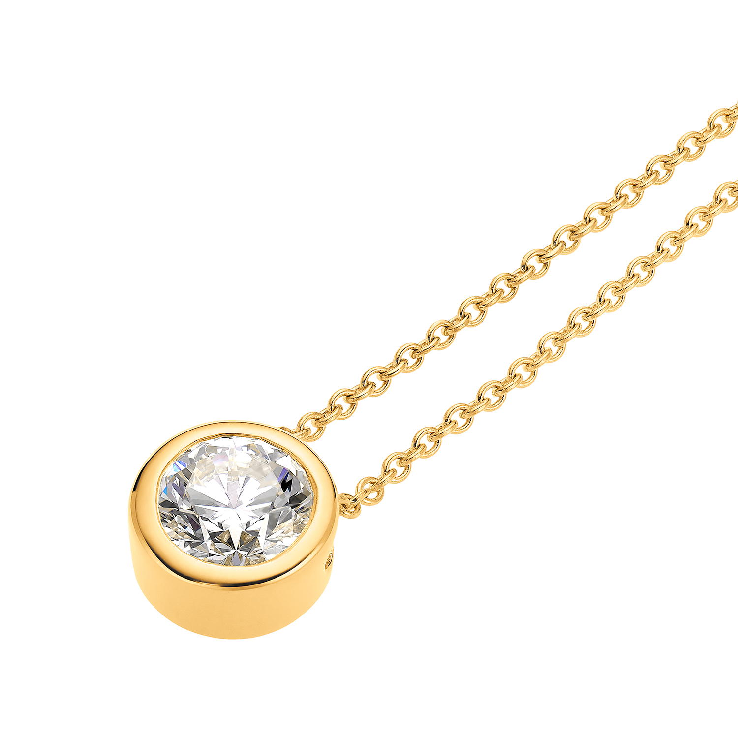 Edles Collier aus 585/- Gold, besetzt mit einem strahlenden Solitär Diamanten im Brillantschliff ca. 1,00 ct., Farbe F-G, Reinheit VSi. Die Zwischenöse bei 42 cm ermöglicht vielseitiges Tragen. Ein Schmuckstück von zeitloser Eleganz – ideal als Geschenk zu besonderen Anlässen wie Geburtstag, Jubiläum oder Hochzeit. Ein glanzvoller Ausdruck von Stil und Wertschätzung. Dieser Artikel wurde nachhaltig unter Einhaltung des Code of Practice (CoP) Standards des Responsible Jewellery Council (RJC) zertifiziert gefertigt