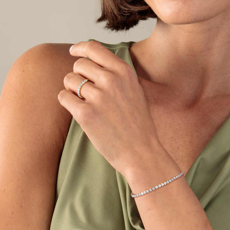 Dieser edle Memoirering aus 585/- Gold ist mit Lab Grown Diamonds im Brillantschliff besetzt. Mit einem unglaublichen Gesamtgewicht von ca. 1,00 Karat, in der Farbqualität F-G (Feines Weiß) und Reinheit VSI, funkeln die synthetischen Diamanten in hoher Brillanz. Ein stilvolles Schmuckstück, mit außergewöhnlichem Feuer, für besondere Momente.