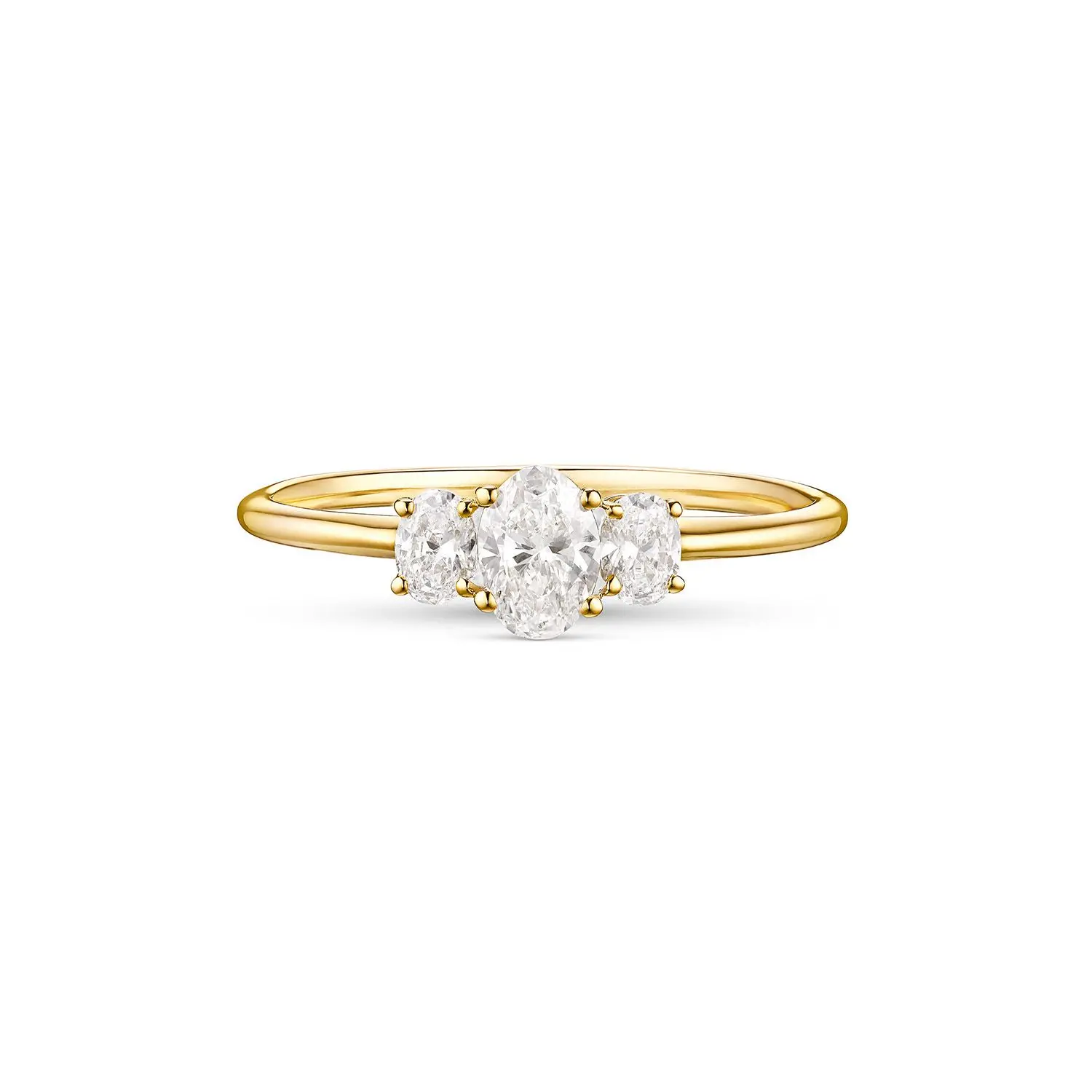 Moderner Ring aus 585/- Gelbgold, der mit drei funkelnden laborgezüchteten Diamanten im Ovalschliff ein starkes, elegantes Statement setzt. Die Steine (zus. ca. 0.50 ct, F–G, VSI) verleihen dem Design eine klare, hochwertige Ausstrahlung. Der Ringkopf (ca. 9 × 5 mm) sorgt für eine markante, dennoch stilvolle Präsenz. Ein Schmuckstück für alle, die moderne Eleganz mit besonderem Glanz verbinden möchten. Auch als Geschenk zum Hochzeitstag eine sehr gute Idee.