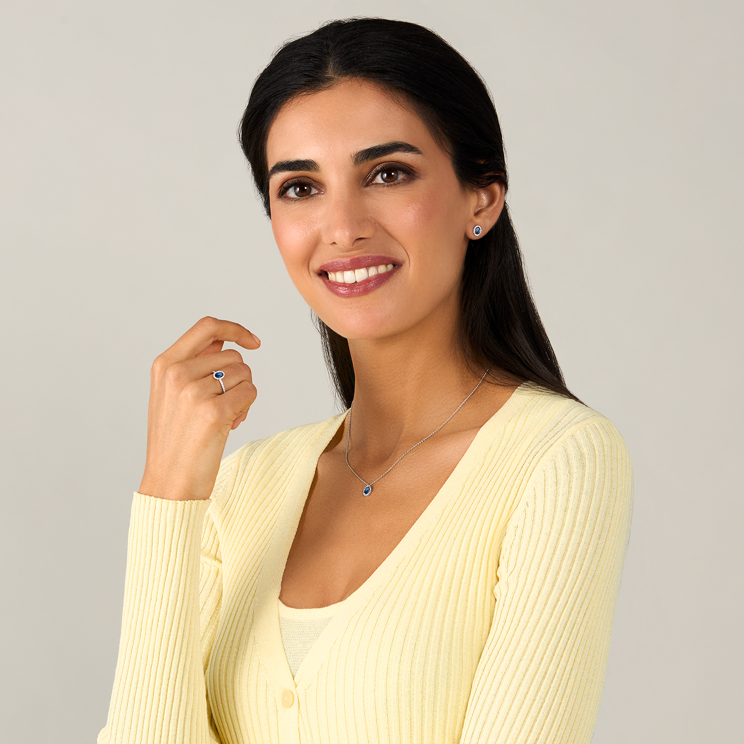 Exklusiver Ring aus Weißgold 585 mit einem tiefblauen, laborgezüchteten Saphir im Ovalschliff. Um den Edelstein herum und in der Ringschiene eingefasst, bringen laborgezüchtete Diamanten im Brillantschliff (zus. ca. 0,27 ct., F-G feines Weiß, Reinheit vsi) den Farbstein zum Leuchten. Das Zusammenspiel aus intensivem Blau und funkelnder Brillanz verleiht dem Design luxuriöse Eleganz und zeitlose Strahlkraft. Ein Meisterstück moderner Schmuckkunst.