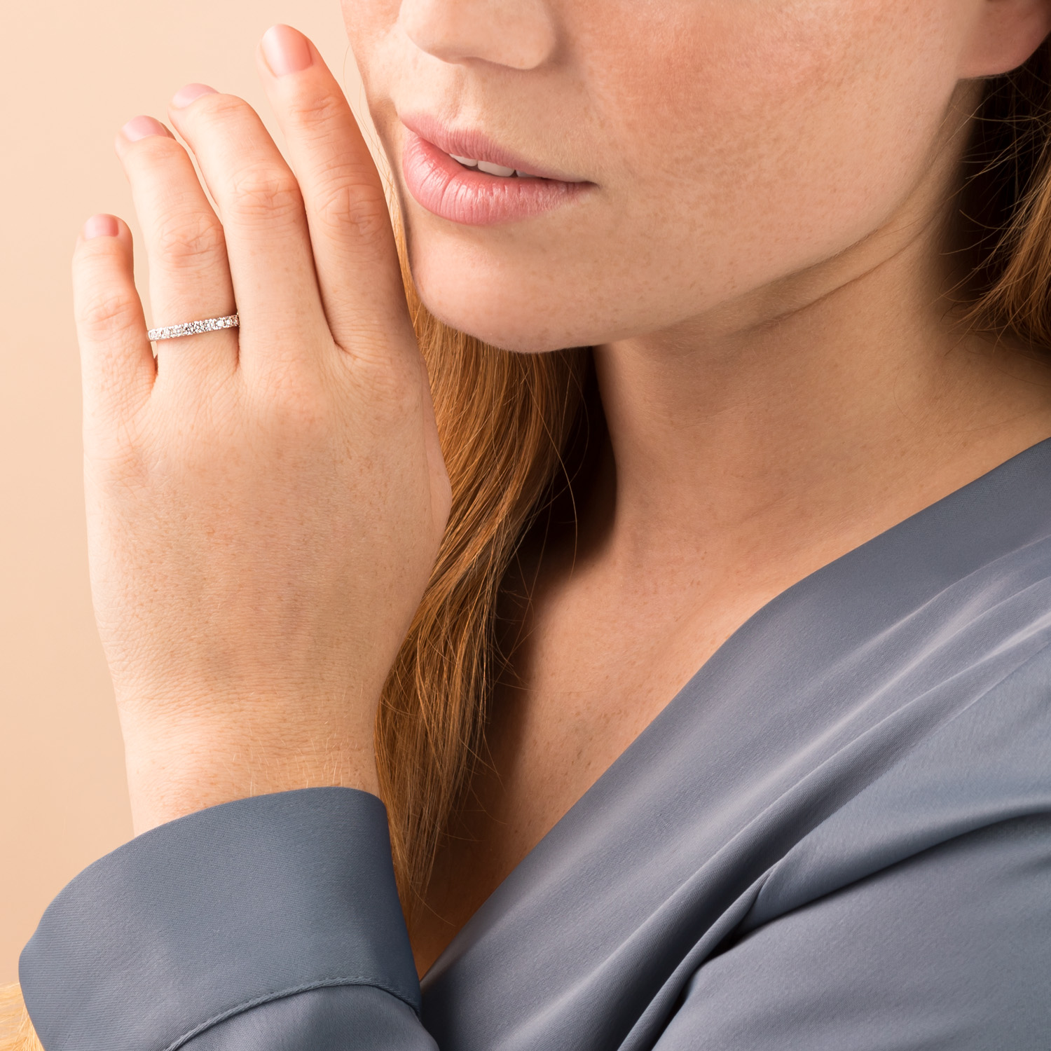 Eleganter Memoirering in 585/- Weißgold mit 13 Brillanten zus.ca. 0.50 ct. (Farbe: I-J Leicht getöntes Weiß; Reinheit: p1). Durch eine präzise Fassart wurde bei diesem Schmuckstück eine perfekte Symmetrie geschaffen, dadurch erreicht dieser Ring ein Maximum an Strahlkraft und lässt jede Hand funkeln. Dieser Artikel wurde nachhaltig unter Einhaltung des Code of Practice (CoP) Standards des Responsible Jewellery Council (RJC) zertifiziert gefertigt.