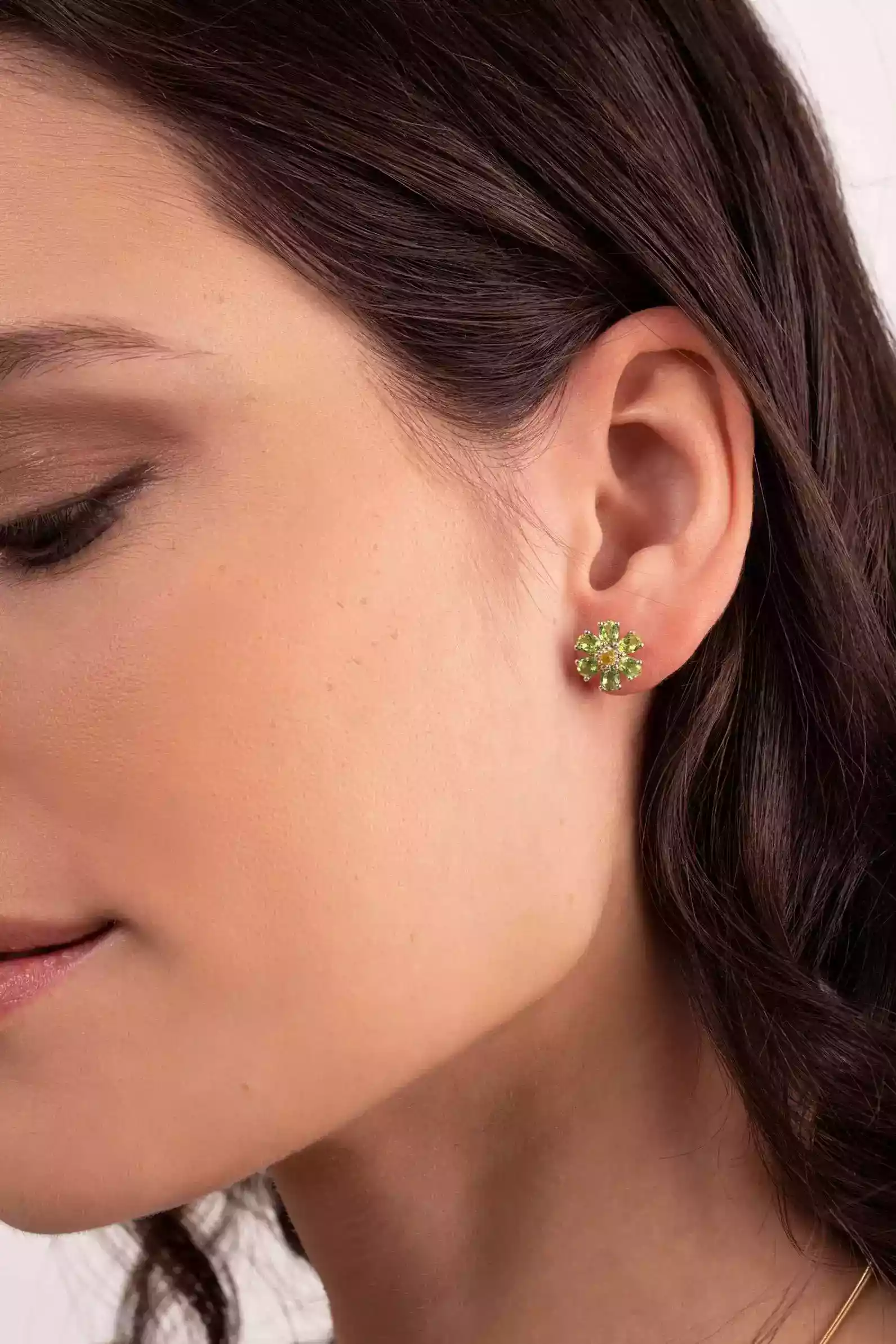 Zauberhaftes Paar Ohrstecker KRISTALL BLÜTE aus Sterlingsilber ø11mm – ein elegantes und filigranes Schmuckstück, das natürliche Schönheit und strahlende Farben vereint. Im Mittelpunkt der Blüte befindet sich ein leuchtender Citrin, der Wärme und Sonnenschein in Ihr Ohr bringt. Um den Citrin herum sind zarte Peridots angeordnet, die mit ihrem frischen Grün für einen lebendigen Kontrast sorgen. Diese Ohrstecker sind perfekt, um jedem Outfit einen Hauch von Eleganz und Frische zu verleihen. Ein wunderschöner Begleiter für jeden Anlass, der Ihre Persönlichkeit unterstreicht und Sie zum Strahlen bringt!