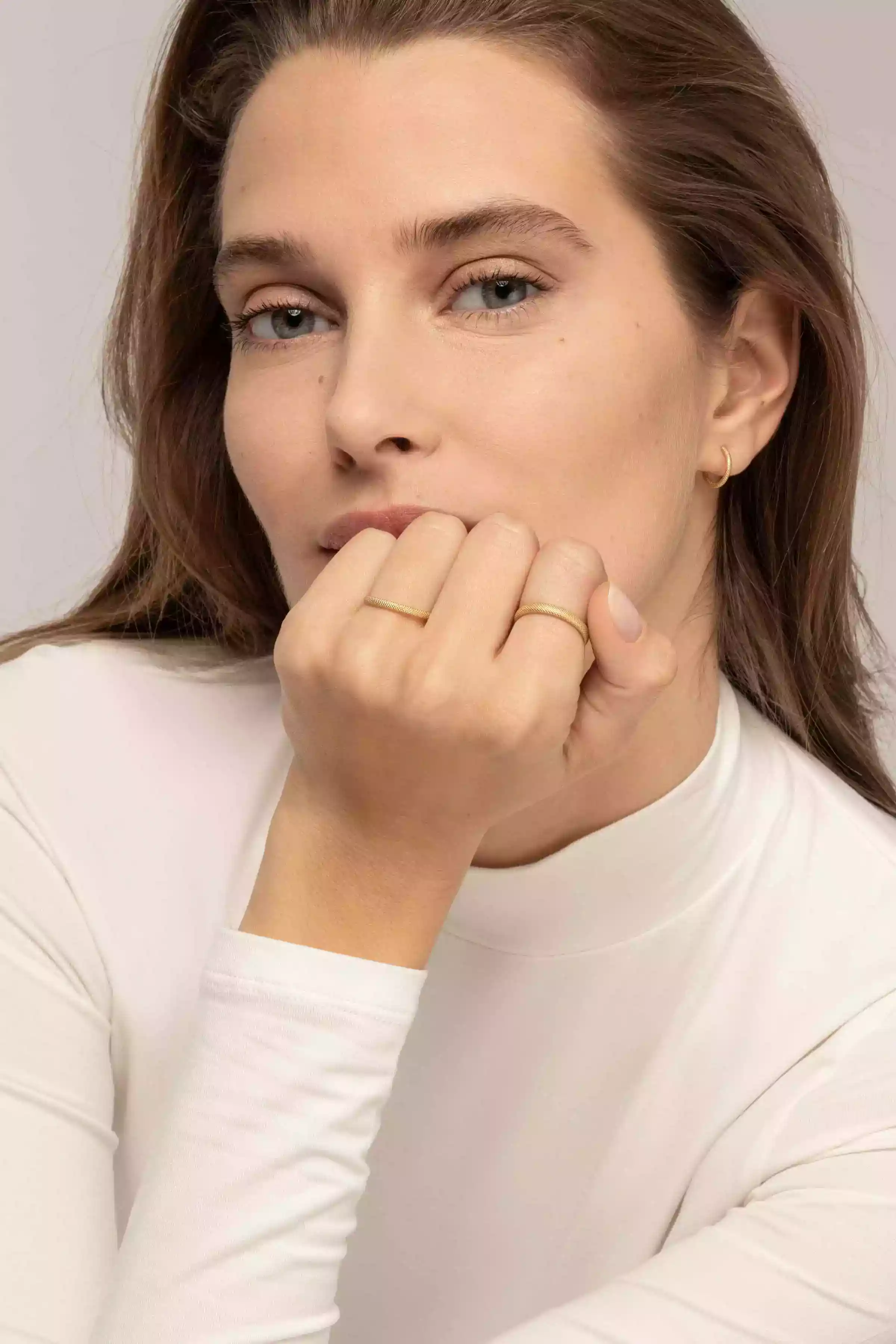 Der AURUM Ring aus hochwertigem 750/- Gelbgold besticht durch sein schlichtes, elegantes Design. Mit einem Durchmesser von ca. 2 mm bleibt er dezent und vielseitig – perfekt für den Alltag oder als stilvolles Accessoire. Das kugelige Design verleiht dem Ring eine moderne und zugleich zeitlose Ausstrahlung, die sich wunderbar mit anderen Schmuckstücken kombinieren lässt und jedem Look eine subtile Raffinesse verleiht. Die hochwertige Verarbeitung sorgt für angenehmen Tragekomfort und langanhaltende Freude am Tragen. Durch seine zurückhaltende Eleganz fügt sich der Ring harmonisch in verschiedene Stilrichtungen ein und setzt gleichzeitig einen stilvollen Akzent, der nie fehl am Platz wirkt. Ein elegantes Schmuckstück, das durch Schlichtheit, Qualität und subtile Ausstrahlung überzeugt und jedem Outfit eine besondere Note verleiht.