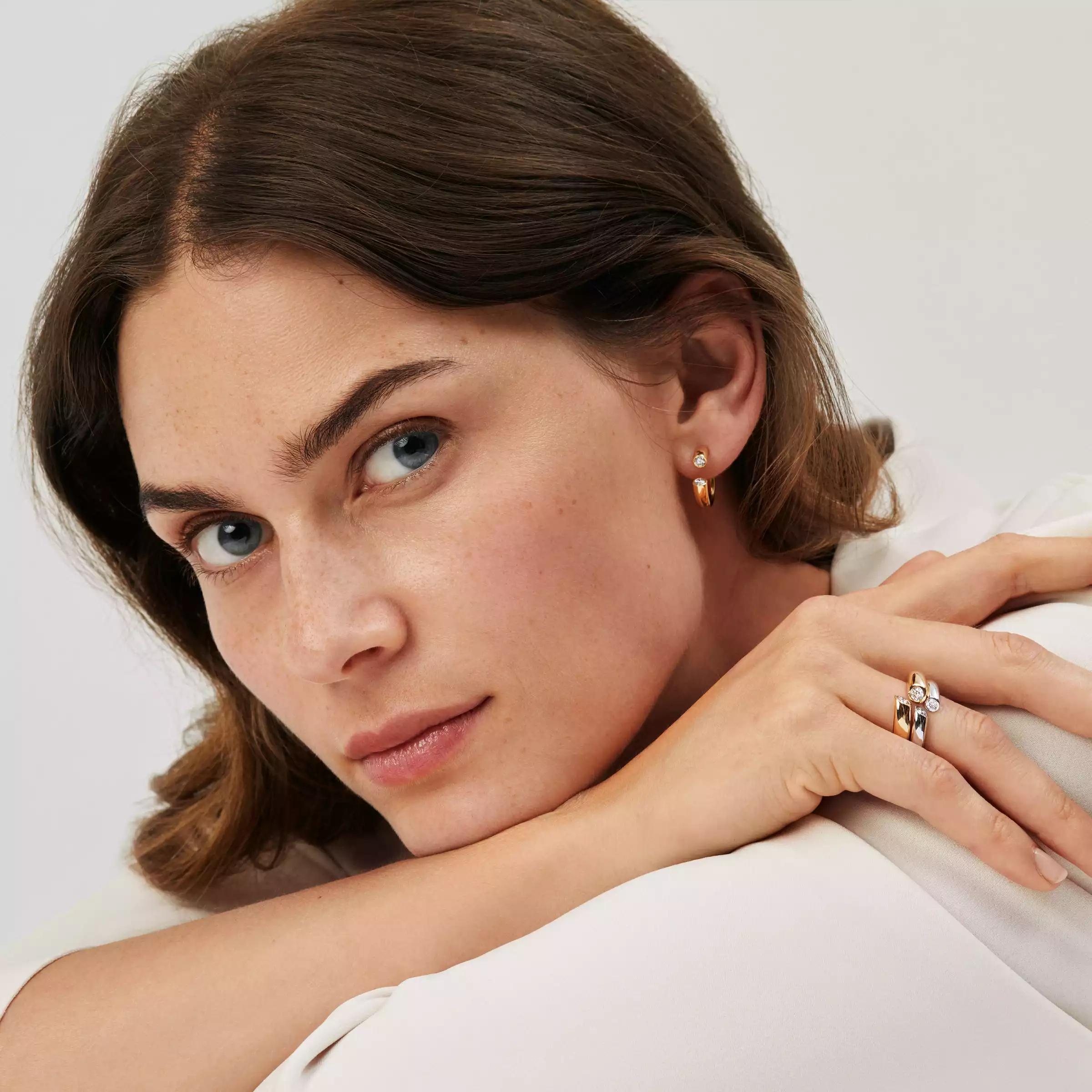 Der DIALOG Swing Ring ist ein stilvolles und elegantes Schmuckstück aus hochwertigem 750/- Gelbgold. Das besondere Design wird durch zwei funkelnde Brillanten mit einem Gesamtgewicht von 0,25 ct in der Qualität TW-vsi hervorgehoben, die dem Ring ein zauberhaftes Strahlen verleihen. Sein zeitloser Look macht ihn zum perfekten Begleiter für besondere Anlässe oder als edles Accessoire im Alltag – ein Symbol für stilvolle Raffinesse, handwerkliche Präzision und dezente Pracht. Die harmonische Verbindung aus warmem Gold, präzisem Schliff und funkelnder Klarheit verleiht dem Ring eine leichte, doch präsente Eleganz, die jeden Look mühelos aufwertet. Ob bei festlichen Gelegenheiten oder als tägliches Stil-Statement – der DIALOG Swing Ring vereint hochwertige Materialien mit moderner Lässigkeit und veredelt jedes Outfit.