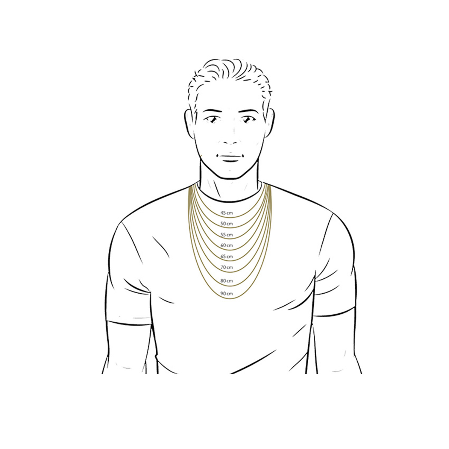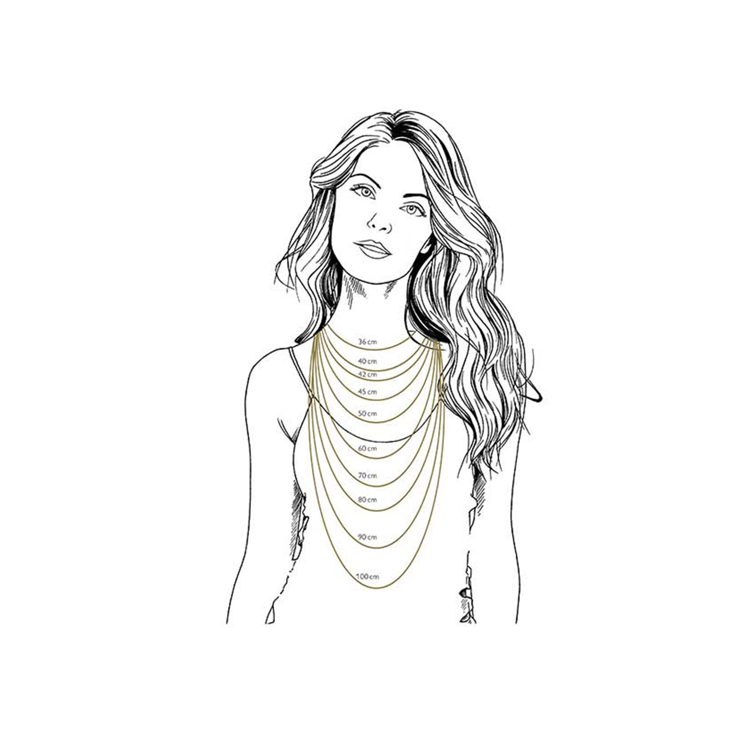 Nachfolgend geben wir Ihnen einen hilfreichen Überblick über die gängigen Kettenlängen und deren Wirkung beim Tragen: