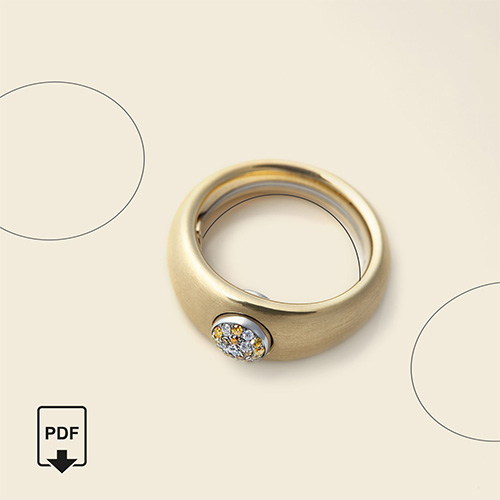 Sie können alternativ auch Ihren Ring auf die Schablonen der ausgedruckten PDF legen. Achten Sie bitte darauf, diese maßstabgerecht auszudrucken (Originalgröße). Wenn Ihr Ring auf der richtigen Größe liegt, sollten Sie im Inneren des Rings nur die Linie sehen.