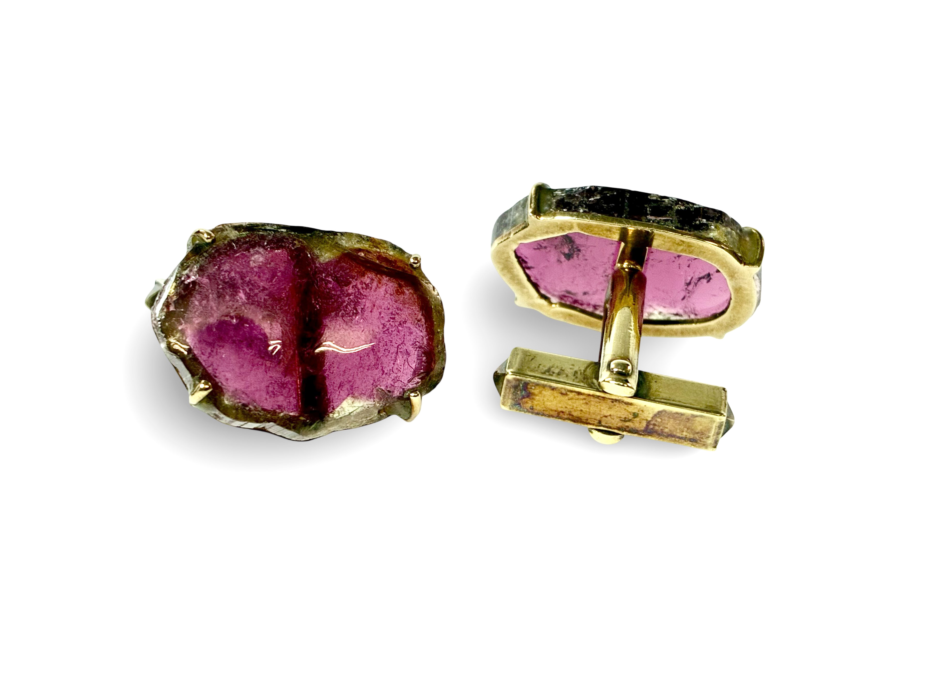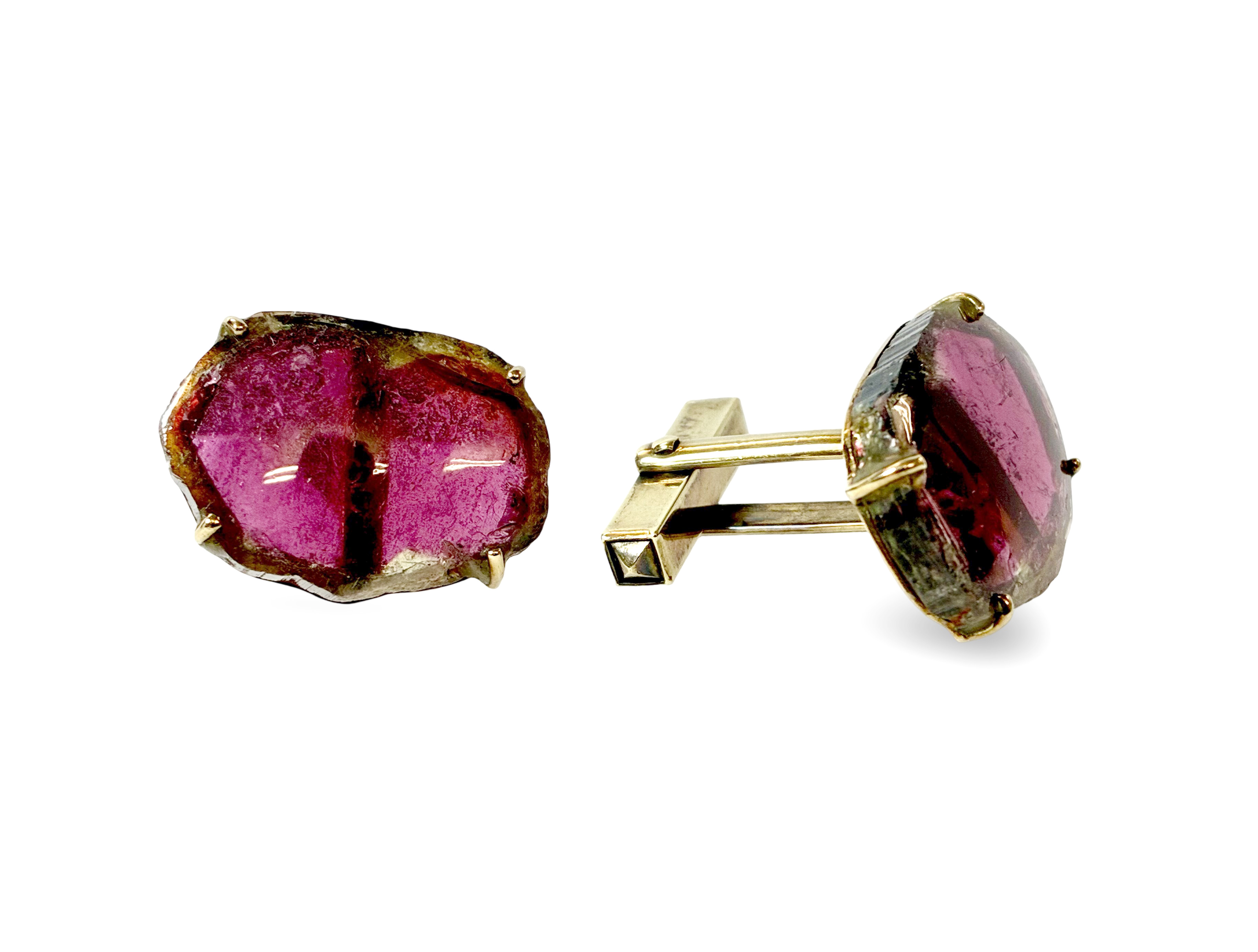 Ware aus Privatbesitz - Wassermelonen Turmalin Manschettenknöpfe Gold 585