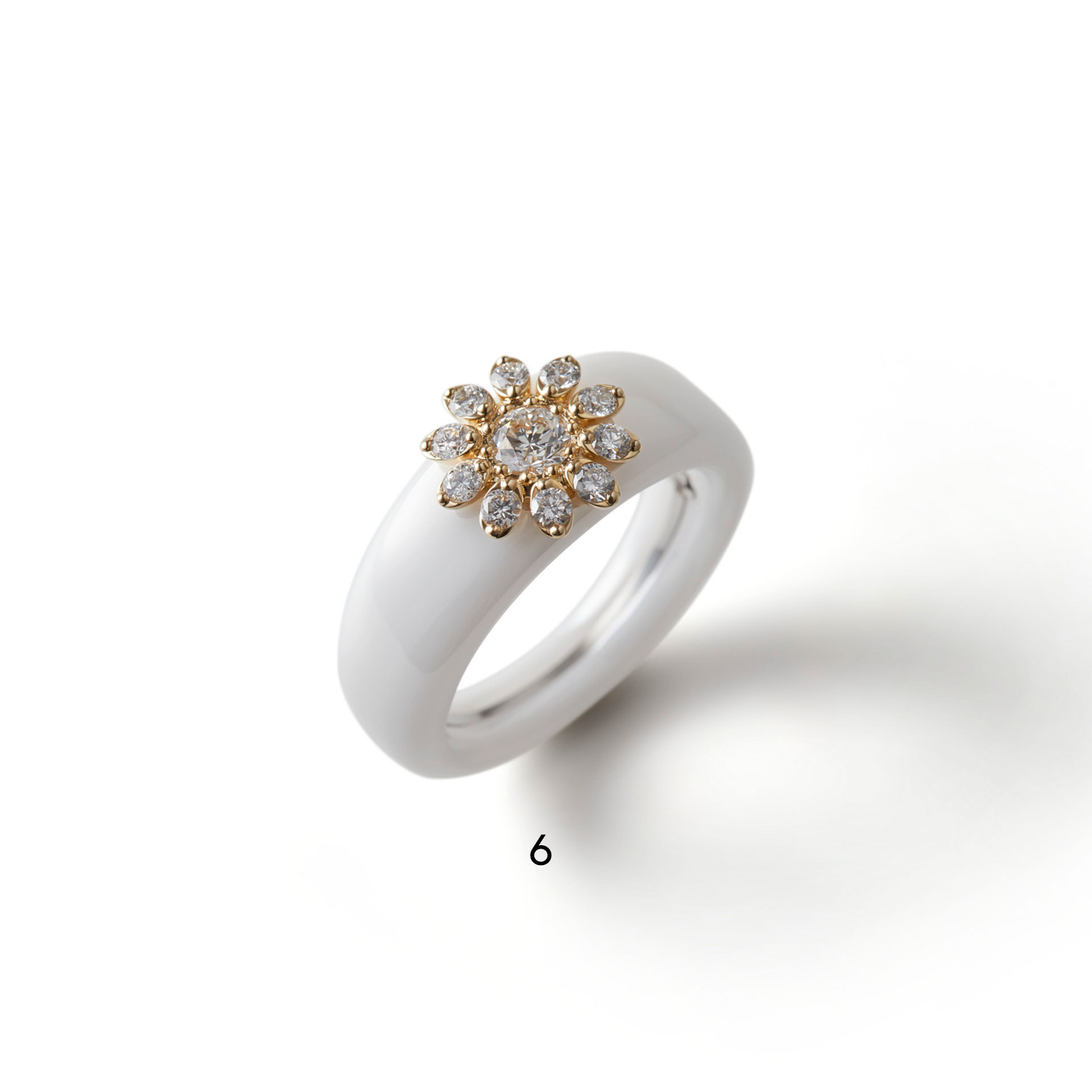 Ein diamantenes Blümchen für jeden Tag – die Ansteckblume für die Hand. Sie sind der leuchtende Mittelpunkt des Geschehens. Ein Viertelkarat verlangt nach gebührender Aufmerksamkeit. Hier fühlt sich Charlotte so richtig zu Hause.